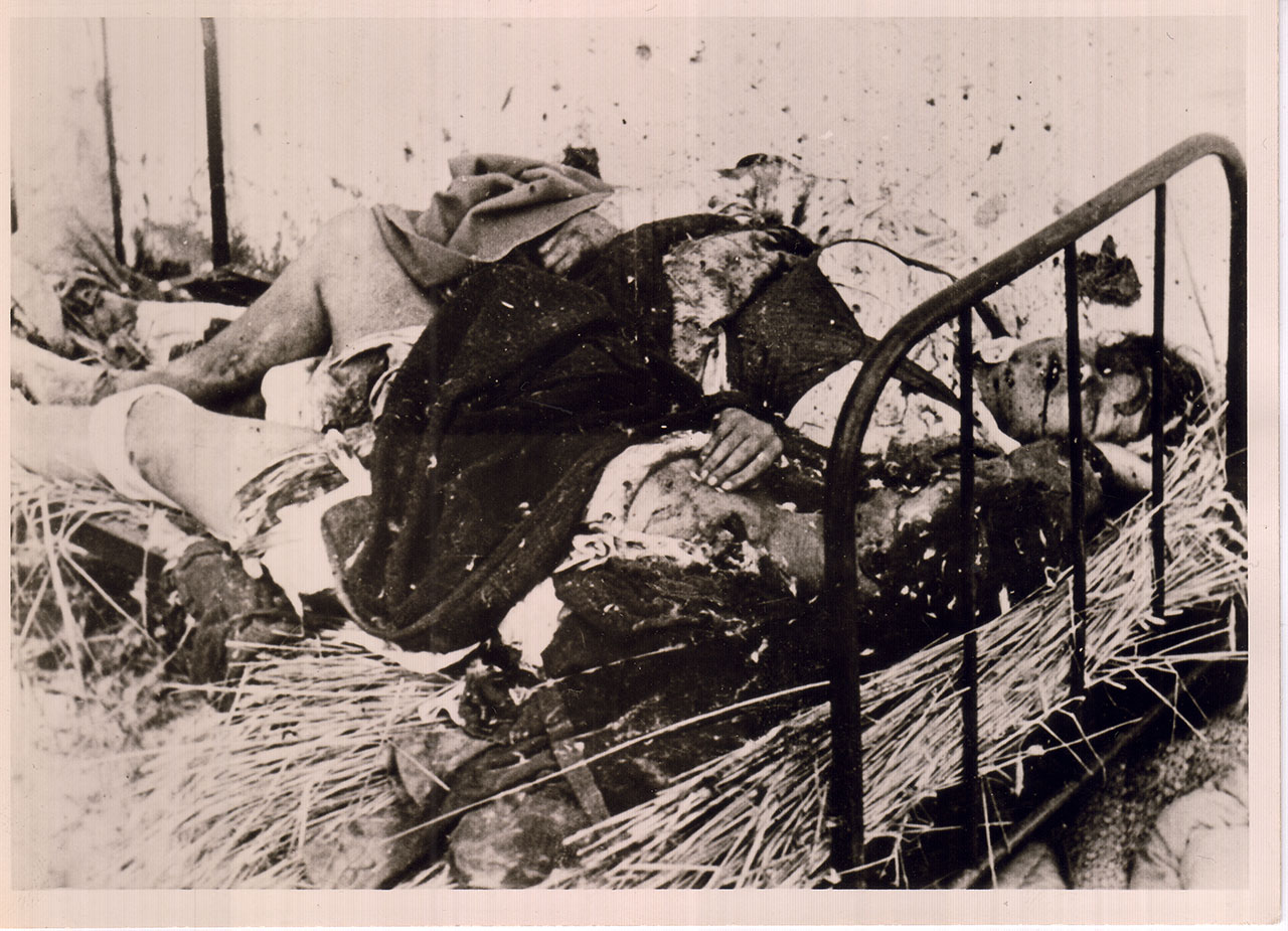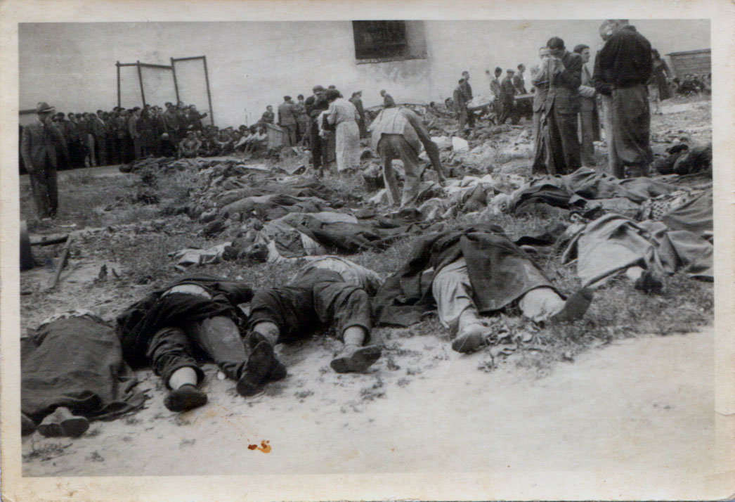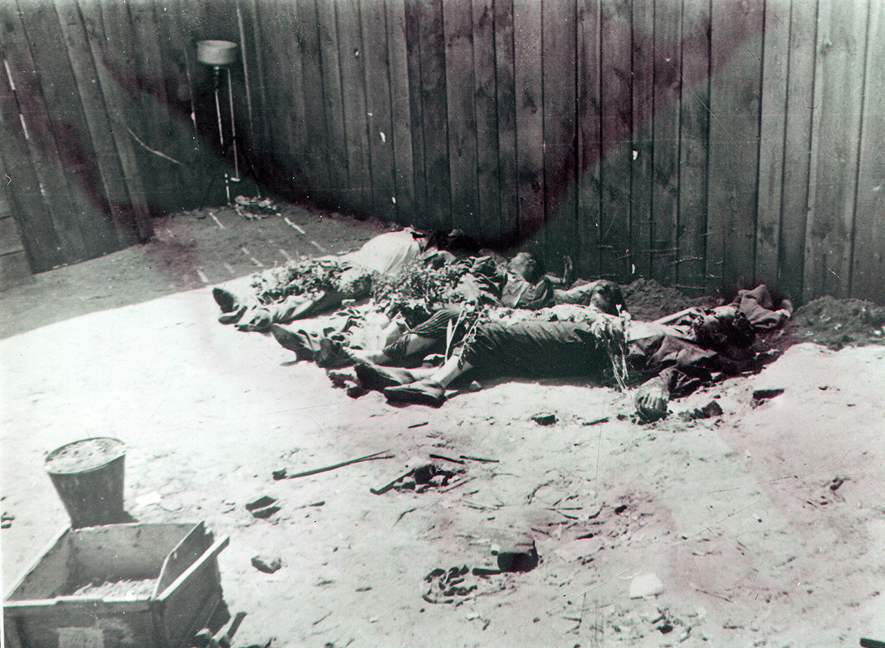 Жертви розстрілів у зовнішньому дворі тюрми. Ці тіла були винесені з камер, а також ексгумовані з трьох траншей, виритих у зовнішньому дворі тюрми.
