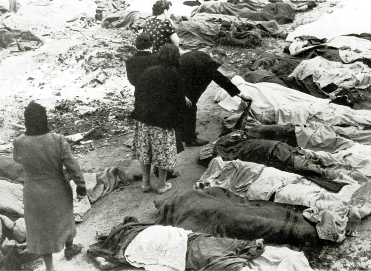 Львів’яни шукають серед розстріляних своїх рідних у подвір’ї в’язниці № 1. м. Львів, 3 липня 1941 р.