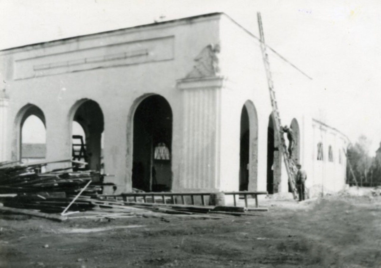 Отже, виявляється, що початково підковоподібна споруда була частиною значного більшого архітектурного ансамблю. Однак, боковим будовам судилось простояти недовго. Вже в першій половині 1930-х рр. відбувається демонтаж двох крайніх павільйонів. Далі в 1936 році повністю розбирають праве крило через спорудження павільйону Науки та Техніки, в якому тепер, до речі, розташований кінотеатр «Львів». Ну а в роки Другої світової війни зникає й ліве крило.