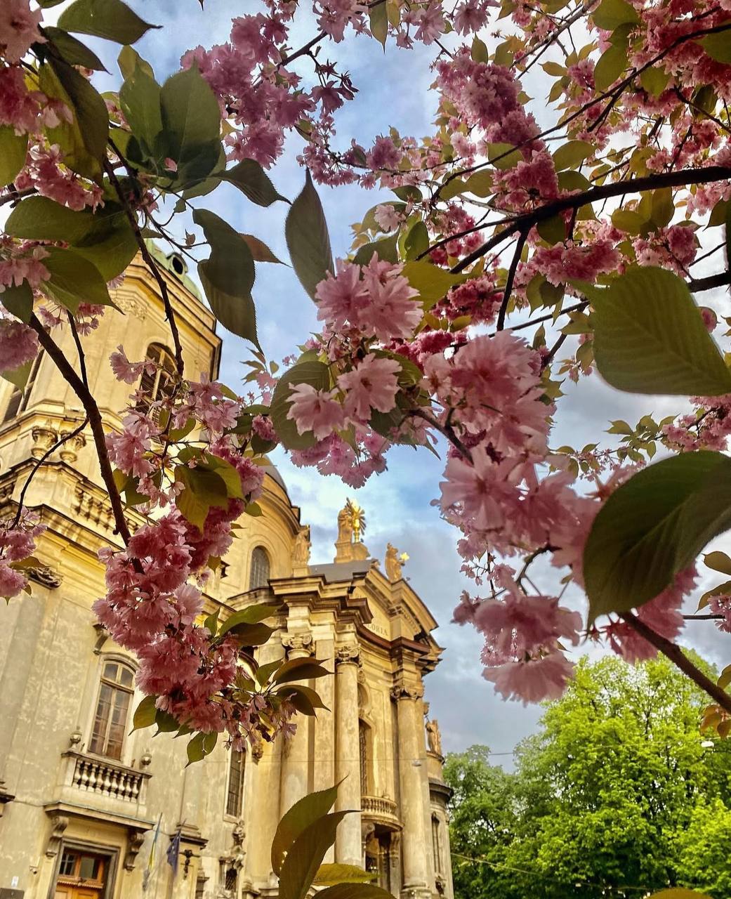 І не можу не написати про одне єдине деревце сакури, яке знаходиться біля Домініканського собору, яке додає тепла і ніжності подвірʼю, на якому воно росте. Там Ви не тільки зможете насолодитися цвітінням, але й можете відвідати собор і ближче познайомитись з одним із шедеврів архітектури.