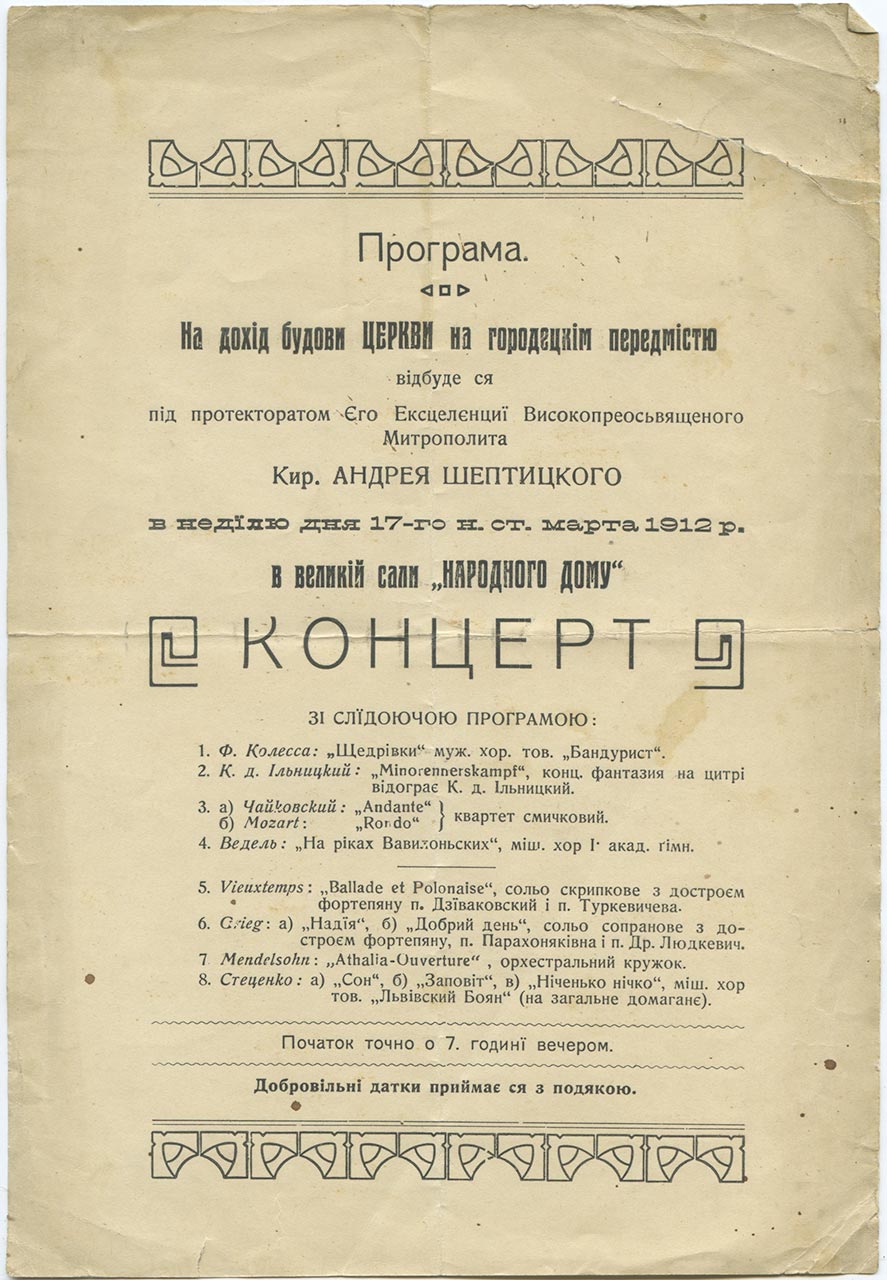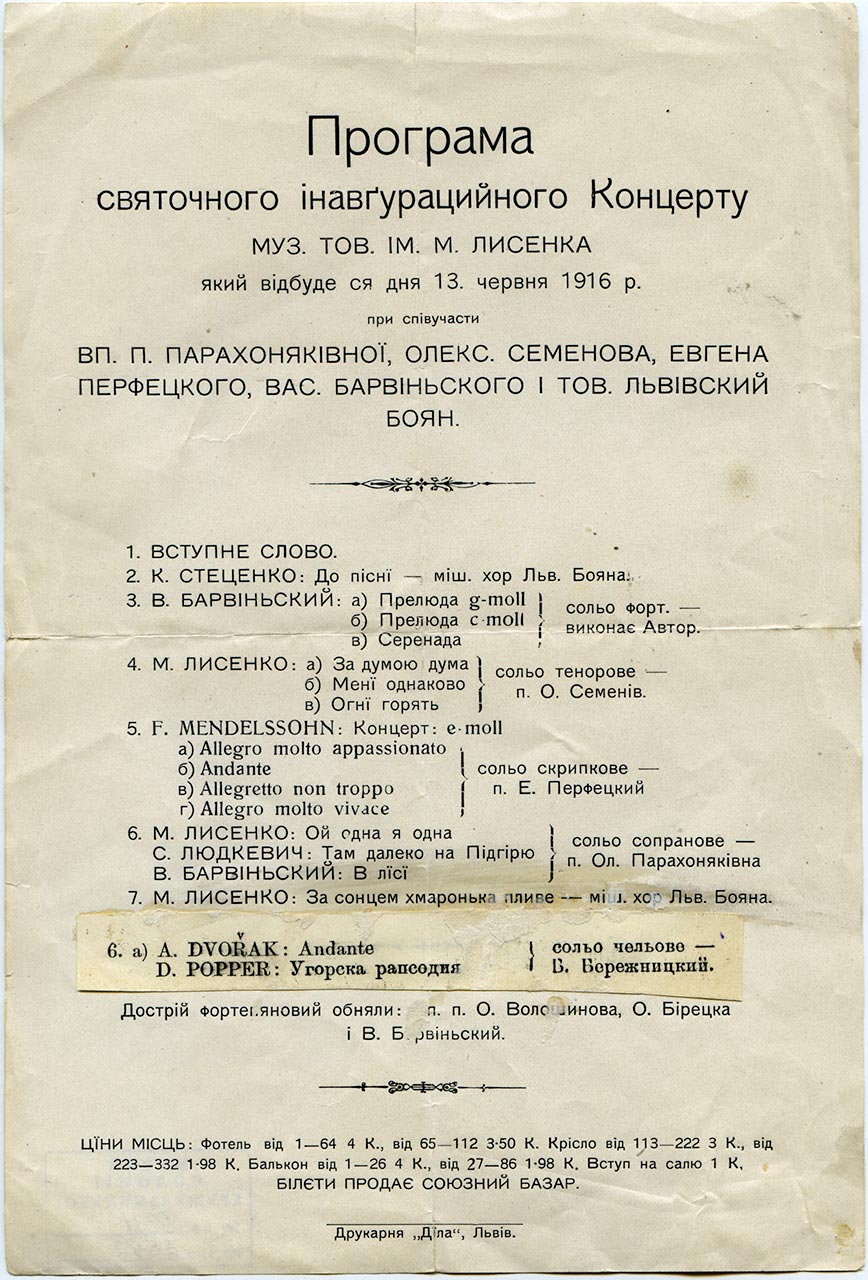 У червні 1916 р. на концерті з нагоди освячення будинку Музичного товариства ім.М. Лисенка у виконанні Олександри Парахоняк прозвучав солоспів “Там далеко на Підгірю”.