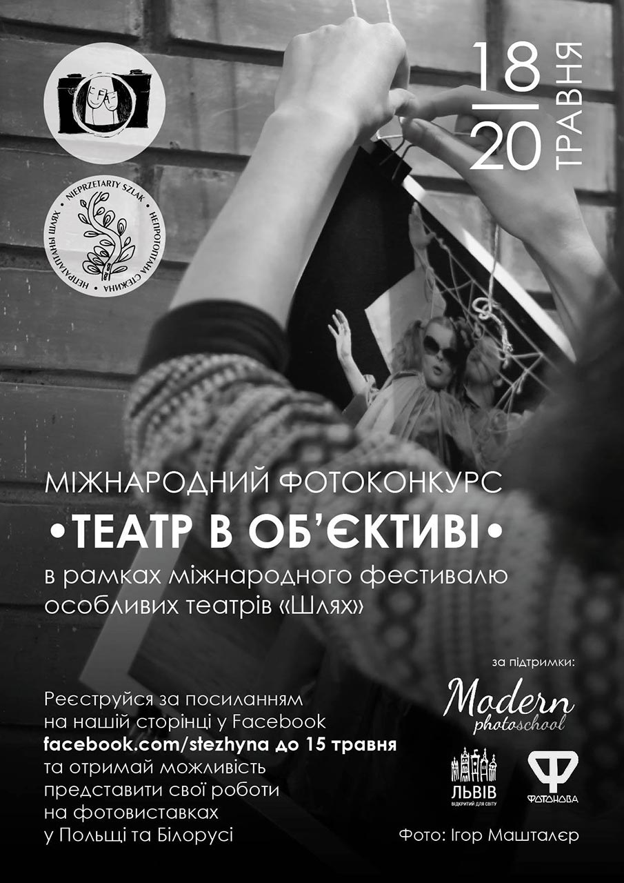 Стартує набір заявок на фотоконкурс, який відбудеться 18-21 травня в рамках ХІІ Міжнародного фестивалю особливих театрів “Шлях”. У фестивалі візьме участь 11 театральних колективів з України, Польщі та Литви, а це близько 150 акторів, які покажуть вистави на різні тематики – від дитячих казок, до філософських роздумів про сутність людини.