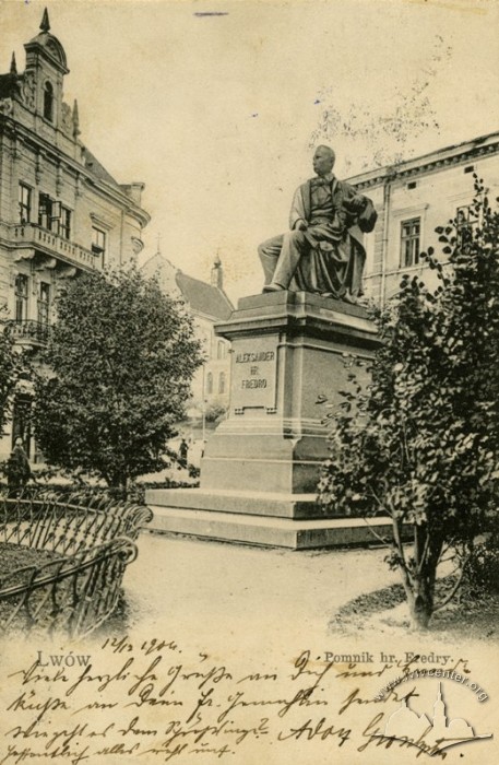 На площі, що колись називалась Академічною, де тепер розташований пам’ятник Михайлові Грушевському, 24 жовтня 1897 відкрили пам’ятник графові, письменникові, почесному громадянину Королівського столичного міста Львова, дідові митрополита Андрея Шептицького Александру Фредру.