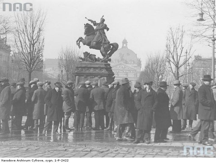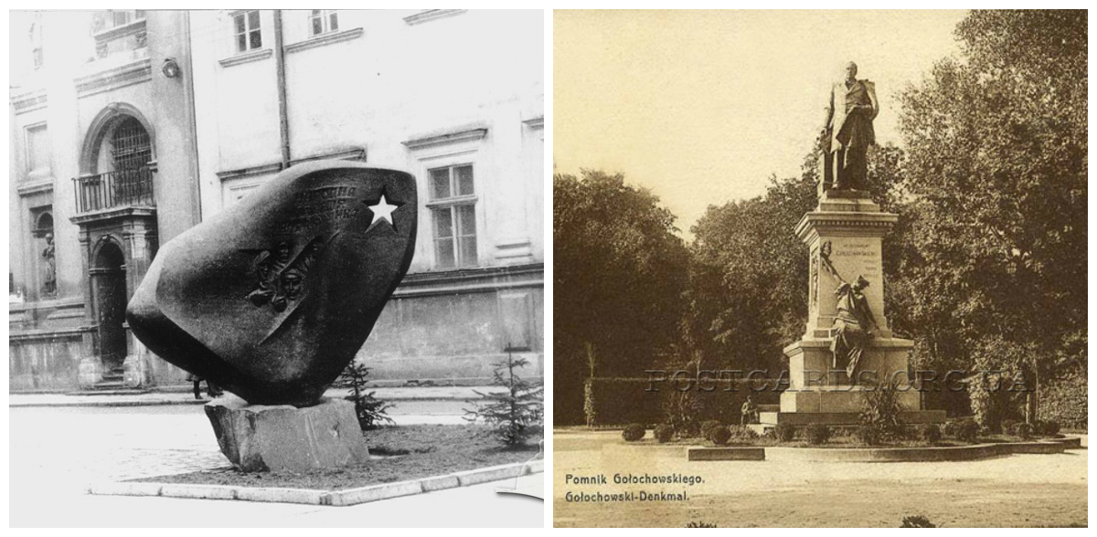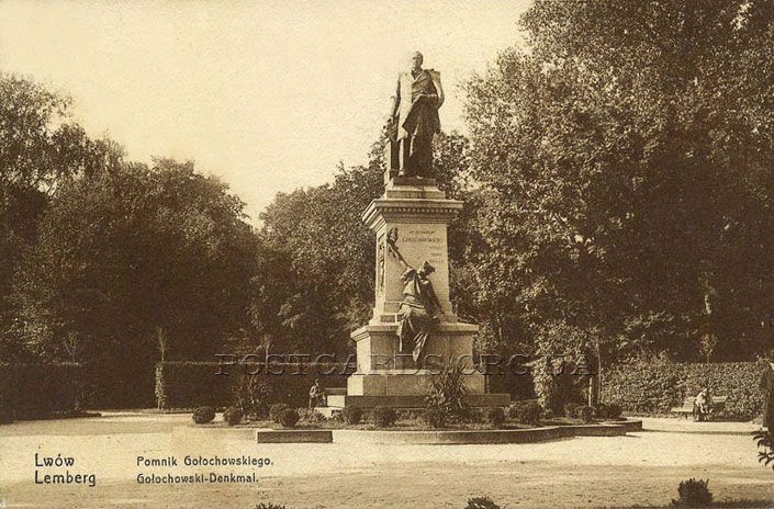 Пам’ятник польському політикові часів Австро-Угорської імперії, наміснику Галичини Агенору Голуховському відкрили біля Галицького крайового сейму (тепер головний корпус Франкового університету) 27 червня 1901 року. З цієї нагоди імператор Франц Йосиф надіслав громаді Львова вітальну телеграму. Але львів’яни не любили Голуховського, то час від часу знущалися з пам’ятника – відривали то ніс, то вухо, одягали на голову нічний горщик.