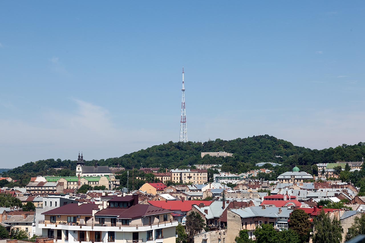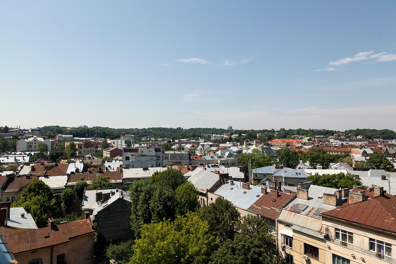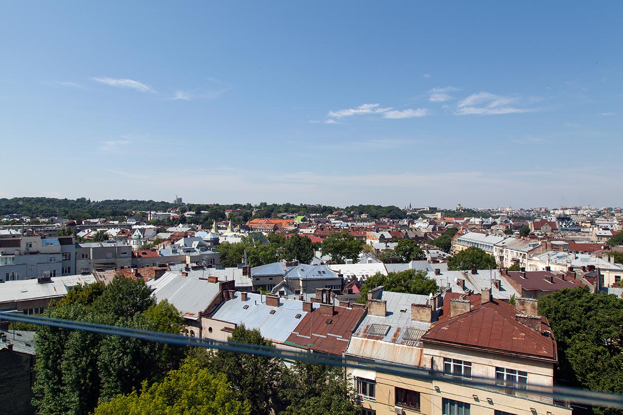 Але головне – звідси дуже добре милуватися панорамою старого і вже, на жаль, не дуже строго Львова. Звичайно, літня зелень завкриває велику частину архітектурних красот міста, але створює свій незабутній шарм.