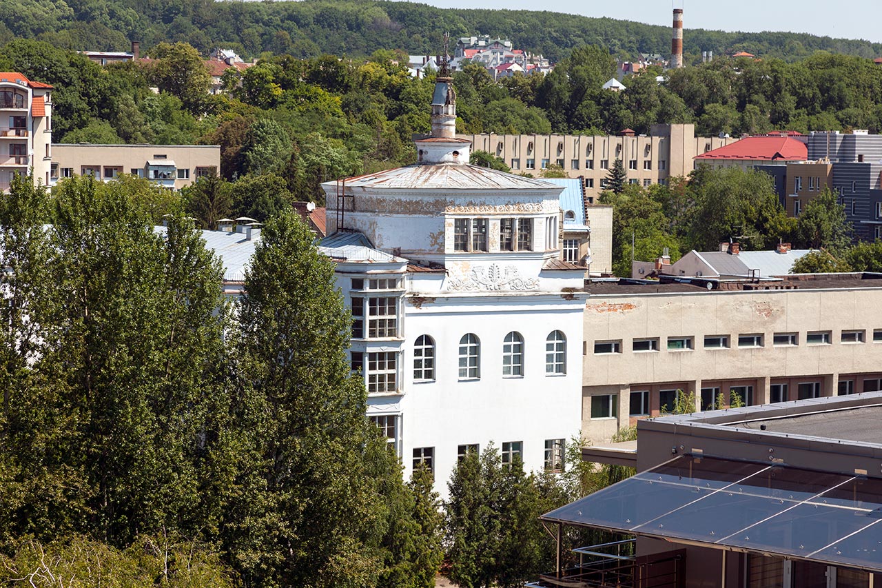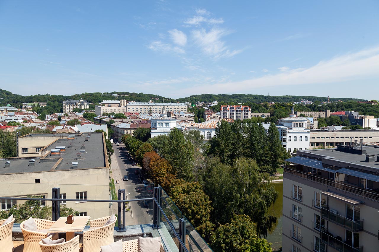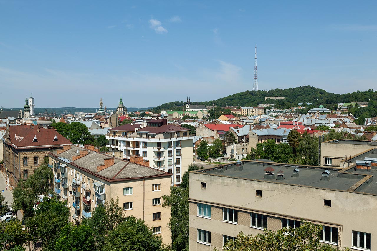 Але головне – звідси дуже добре милуватися панорамою старого і вже, на жаль, не дуже строго Львова. Звичайно, літня зелень завкриває велику частину архітектурних красот міста, але створює свій незабутній шарм.