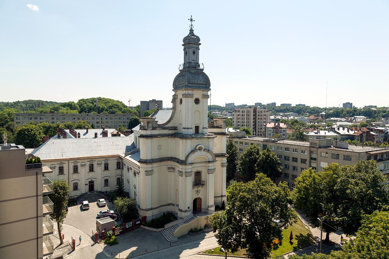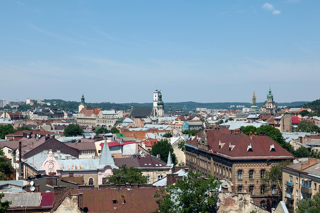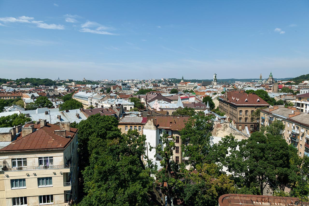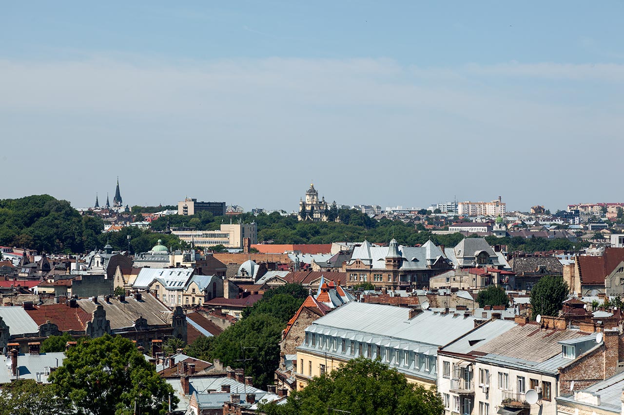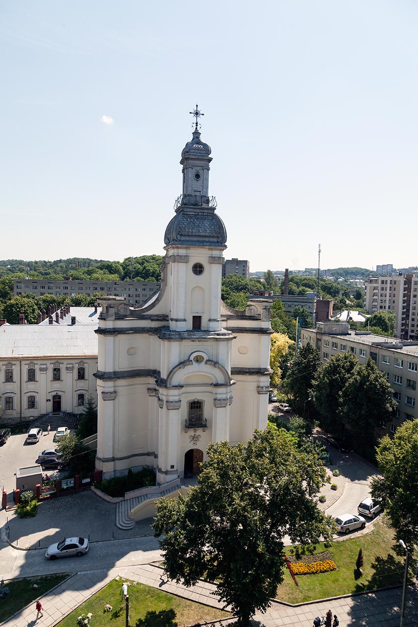 Ще можна побачити звідси Собор святого Юра, що величаво здіймається над містом і гострі готичні шпилі церкви святих Ольги й Єлизавети – теж одного з відомих символів Львова.