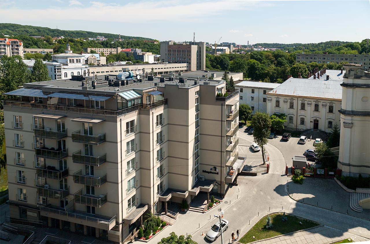 Була пізня осінь, а саме 25 листопада 2014 року, коли ми вперше вилізли на, тоді ще просто дах, на дах “Євроготелю”, що на вул. Тершаковців, 6а. На той час маркетолог готелю Яна на той дах нас і провела. Осіння похмура панорама Львова справляла неоднозначні враження.