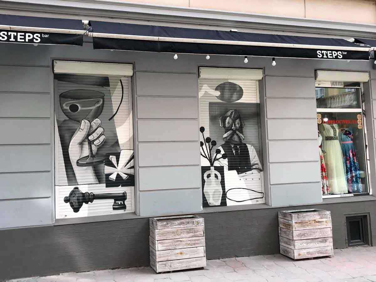 Хоча і тут є винятки: STEPS-bar на вул. Я. Жижки запросив райтерів і вони створили дуже гарні малюнки.