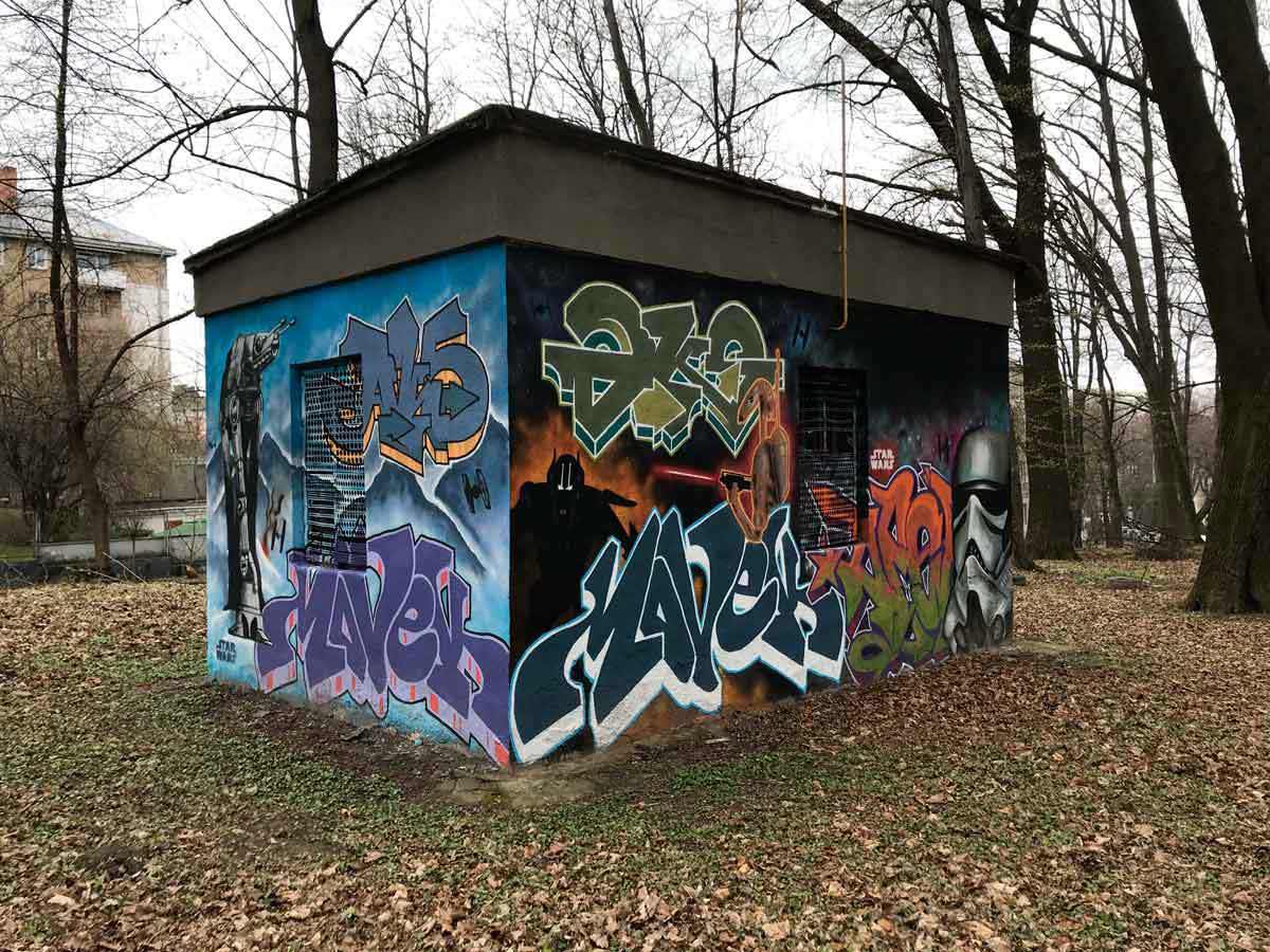 Графіті прийшли до нас не так вже й давно, але з часом стали дуже агресивними. Варто одразу зауважити, що з точки зору закону графіті можна поділити на дві категорії: одні – це прояв мистецтва, інші – звичайнісінький вандалізм. Про третю категорію – написи наркоділерів – не буду згадувати, оскільки цим має займатись поліція. Графіті – на відміну від муралів – це не масштабні твори, в основному, написи на прерізних не надто великих поверхнях. На жаль, деякі графіті є проявом повернення до печерного рівня – їхні автори керуються тільки одним гаслом: “Пуста стіна – дурна стіна”.