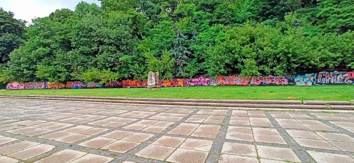 Деколи можна почути думку, що графіті переважно кричущо яскраві. Але якщо порівняти якусь обдерту стіну по принципу “Було-Стало”, то яскраві кольори напевно не зіпсули її! Для прикладу приведу один зі входів у Парк культури, де зліва облицювальні камені геть відвалились і відкрилась сіра бетонна стінка, а справа ще трохи їх лишилось, але вигляд це має такий собі… Тож, думаю, що ліва сторона красивіша!