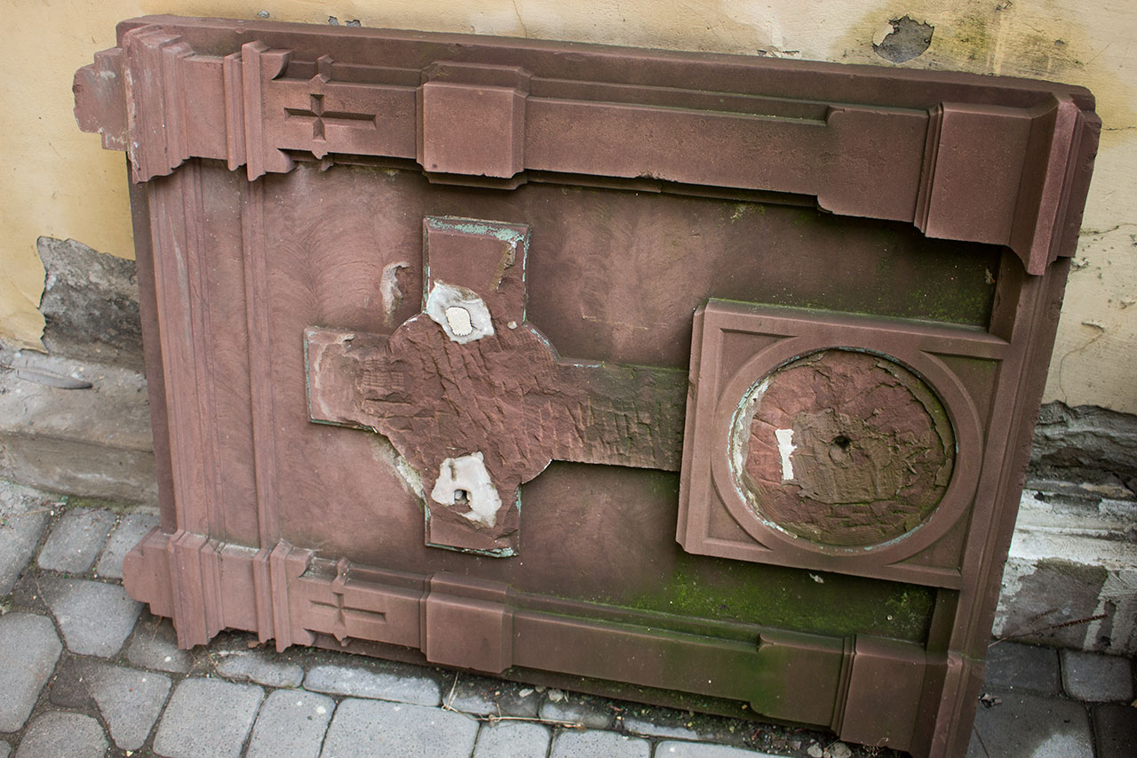 Після Другої світової війни храм був закритий, було знищено скульптури в нішах, а також скульптуру Яна Непомука, яка знаходилась на колоні перед входом до храму, були зруйновані пам’ятні епітафійні таблиці.