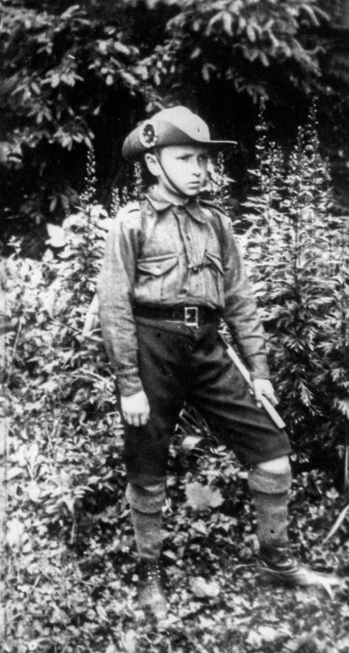 … А однострої? Мами шили та фарбували в баняках у хаті. Все те нелегко роздобуте, зате дуже було цінне. Інж. Я. Вінцковський-Ярославенко3 почав спроваджувати скавтський виряд з Англії. Так ми дістали ширококрисі капелюхи, гранатові бавовняні сорочки (дуже затеплі!), теж сокирки, компаси тощо. Палиці вистругав я ножиком під час вакацій з букового квадратного матеріялу, що його дістав від вуйка з тартаку в лемківському селі Кальниця. Я був гордий з того, що привіз для всіх нас такі палиці.