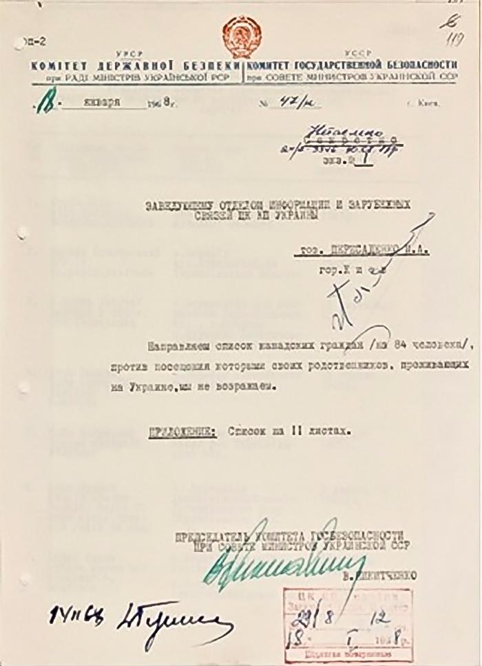 [8] “Довідка про перебування в УРСР у 1961–1965 рр. закордонних українців,” 29 липня 1965 р., Влада УРСР і закордонні українці… С. 117–118.