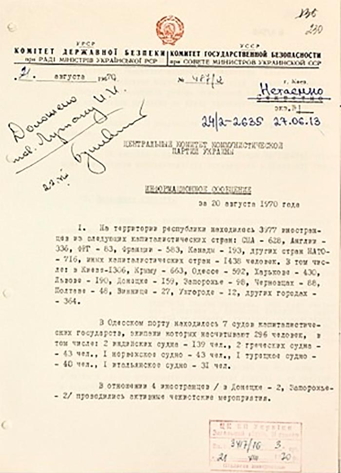 [46] Доповідна записка КДБ при РМ УРСР до Центральному комітетові Компартії України про заходи з недопущення поширення в республіці матеріалів антирадянського характеру, 10 січня 1972 р., Влада УРСР і закордонні українці… С. 227.