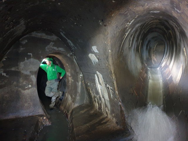 Я знаходився під перехрестям вулиць Дорошенка – Бібліотечна – Шашкевича. Тут є злиття двох колекторів. Менший йде з вулиці Бандери. Більший примикає зліва зі сторони вулиці Брюллова. Далі це все разом тече по вулиці Дорошенка.