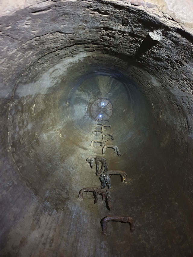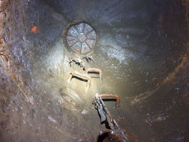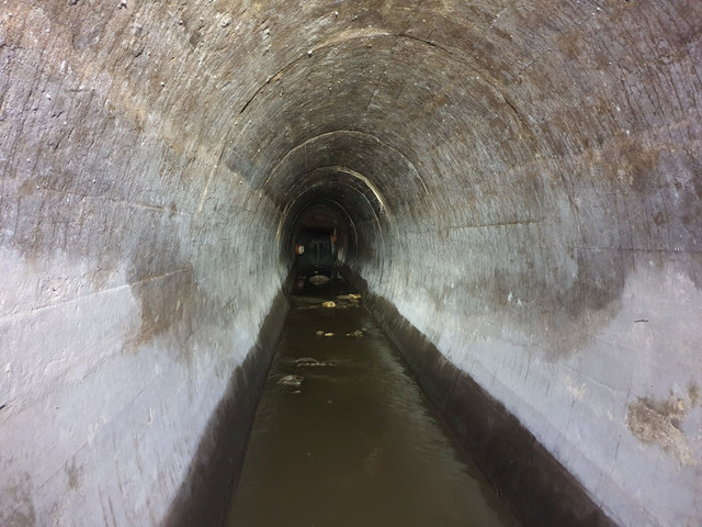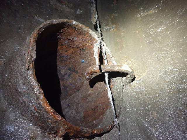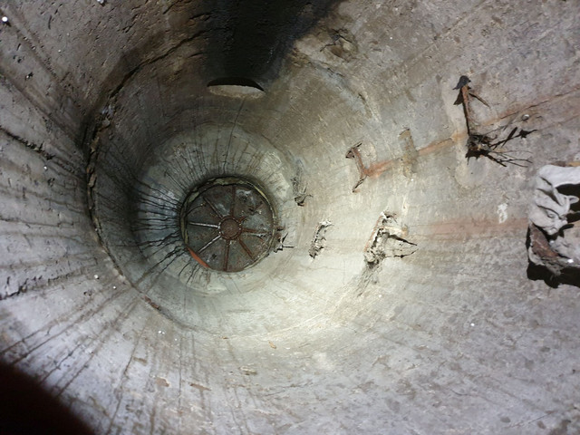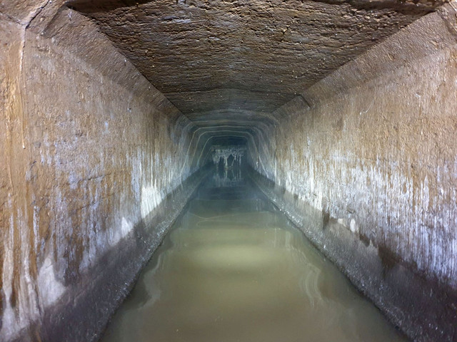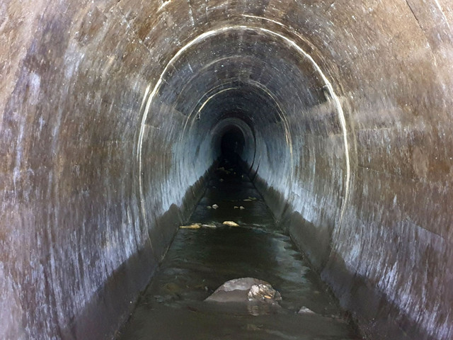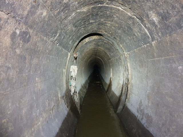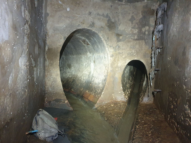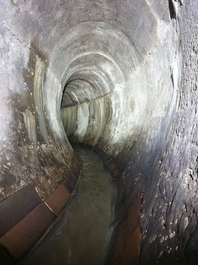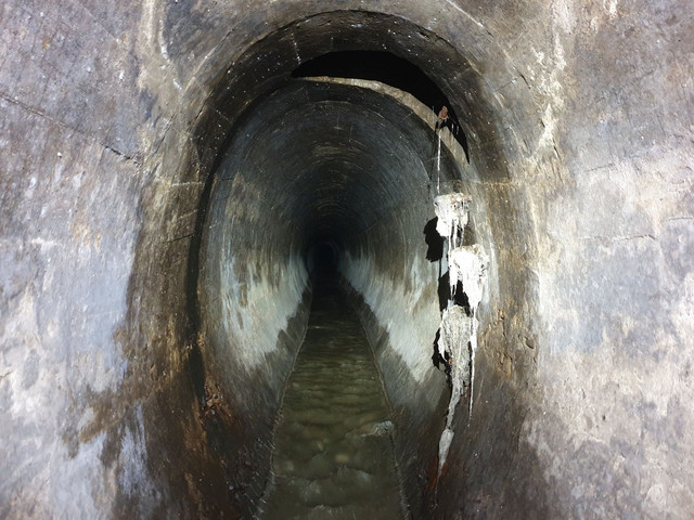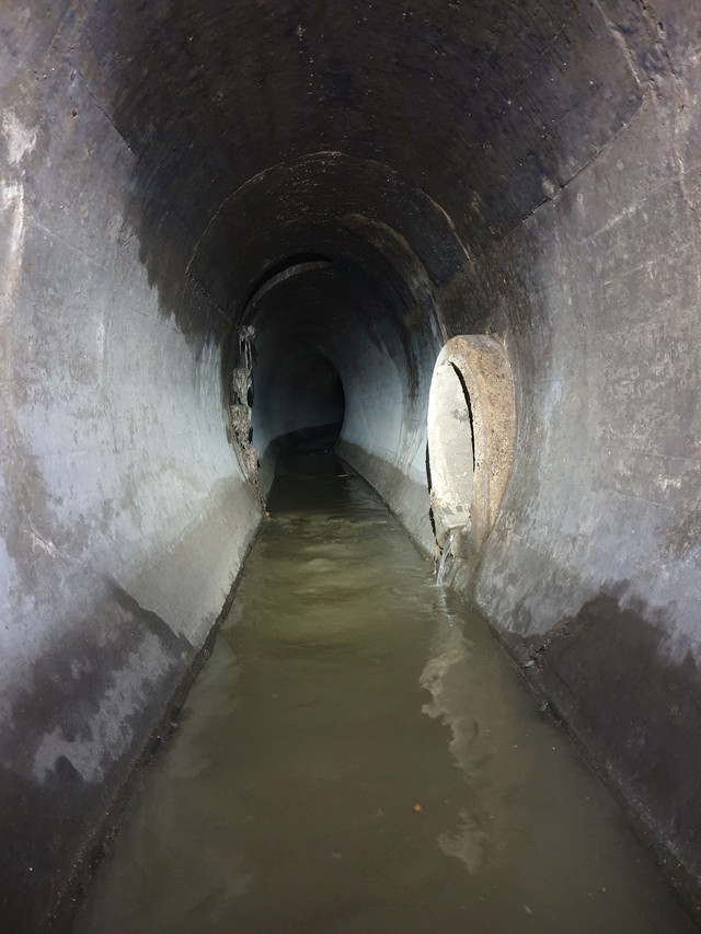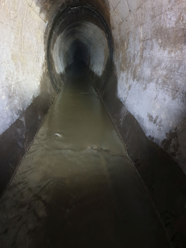 Нижче по течії колектор на вул. Дорошенка зменшується до 80-см яйця і різко пірнає вниз. Так він проходить перепад висоти рельєфу. То ж йти з центру вверх по течії немає змісту. Це мале яйце не пройдеш. Аналогічно як і йти з місця де я спустився в сторону вулиці Бандери.