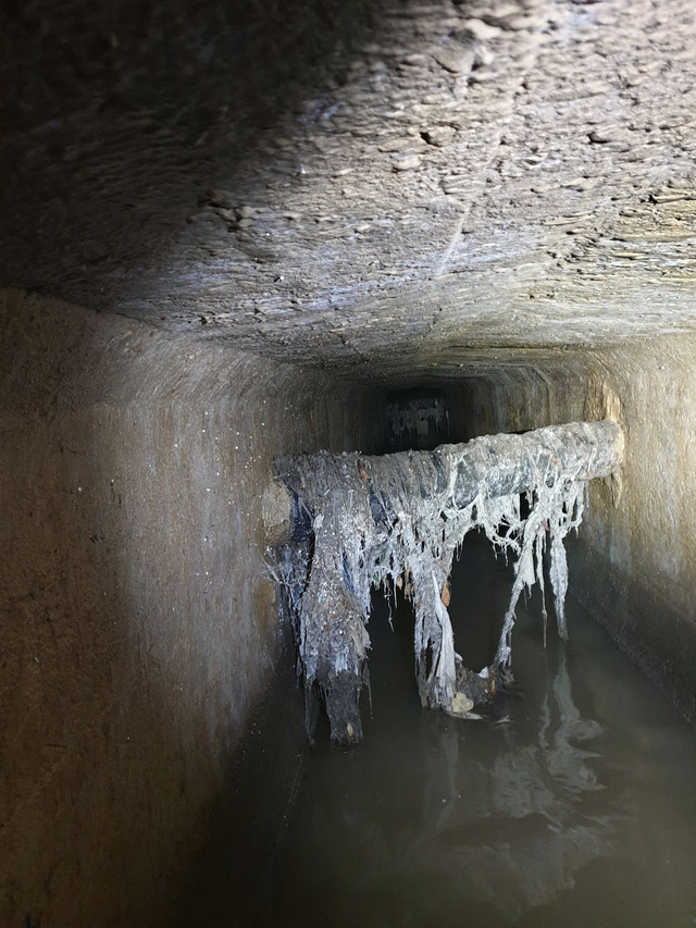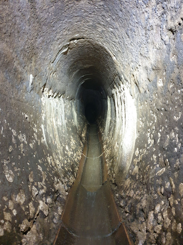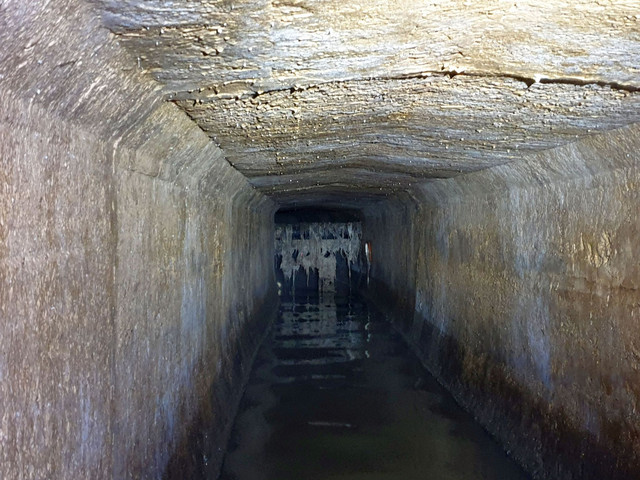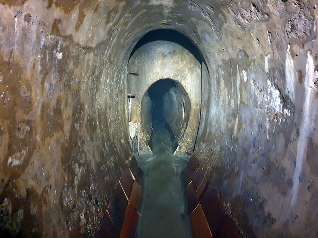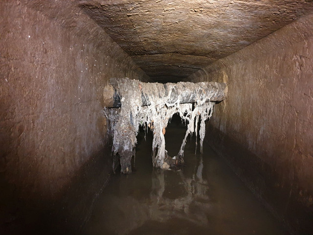 Зрештою прийшлося всю увагу зосередити на дні та на своїх ногах. Я старався не послизнутися та не впасти. А також не порвати бахіли. То ж, непомітно для себе, я наблизився до невеличкого Полтвопаду. Він був штучний. Кілька великих брил лежали на дні. Вони заважали воді текти. Утворилася загата і шум води йшов саме від неї. На жаль, звична ситуація у Львівському колекторі.
