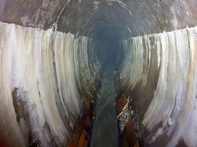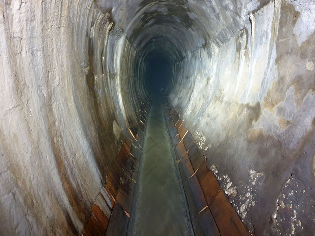 Маленько помалу, світячи ліхтариком в клуби пари я йшов на цей звук. Далеко в кінці тунелю було видно щось. Від цього щось і линув звук води. Але що це було я крізь туман не міг розгледіти. Йти було важко. Дно колектора стало забруднене та всіяне підводними каменюками. Приходилося це все акуратно переступати. З кожним кроком звук води приближався, а Голоси – ні. «Може це мене так плющить?» – подумав я. Та газоаналізатор показував що все з повітрям норм. Та й Новий Рік я майже не «справляв».