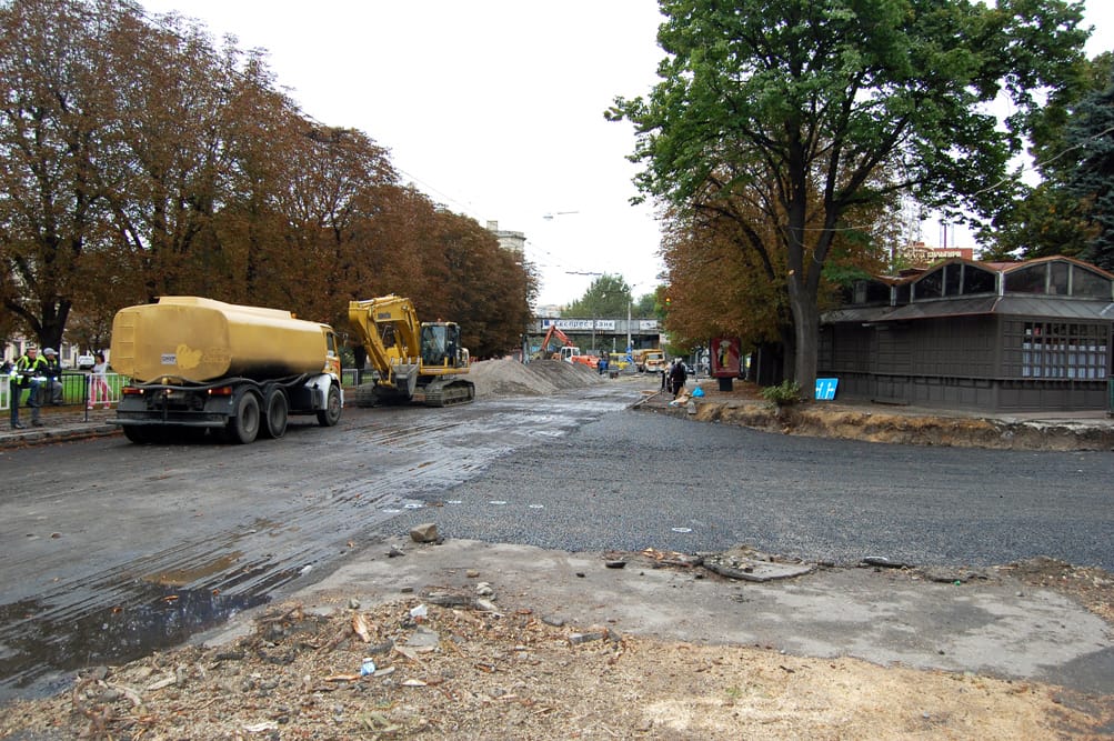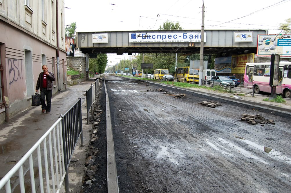 А вже починаючи від залізничного моста тільки зняли старий асфальт.