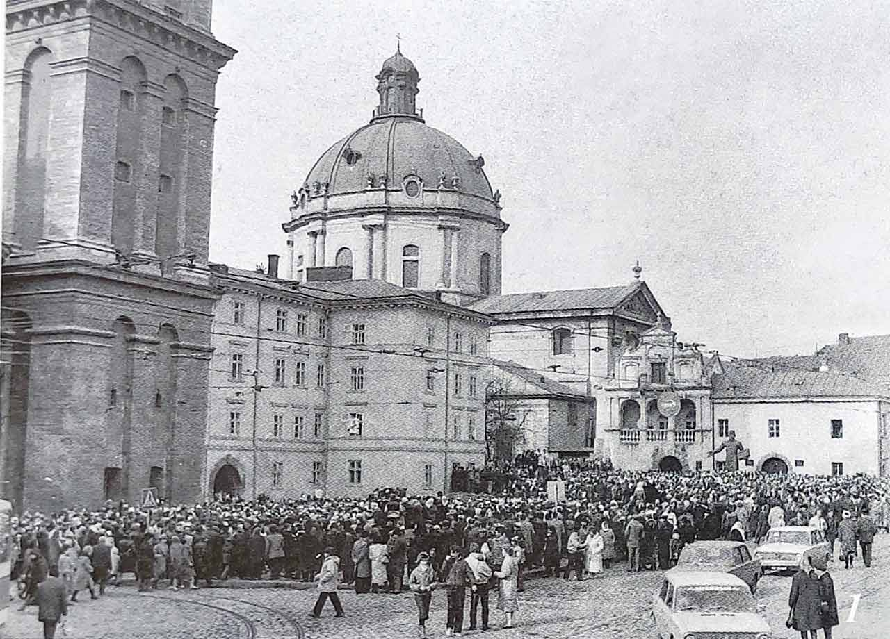 Вже наприкінці 80-х рр. активна частина суспільства, а надто молодь, стали організаторами чисельних зібрань та акцій протесту, учасники яких вимагали відновлення української державності, визнання конституційного статусу української мови як державної мови республіки, створення незалежних профспілок, легалізацію Української греко-католицької церкви та Української автокефальної православної церкви. 13 червня 1988 р. у Львові відбувся перший несанкціонований мітинг біля пам’ятника Іванові Франкові, 17 вересня – 200-тисячний марш за легалізацію УГКЦ.
