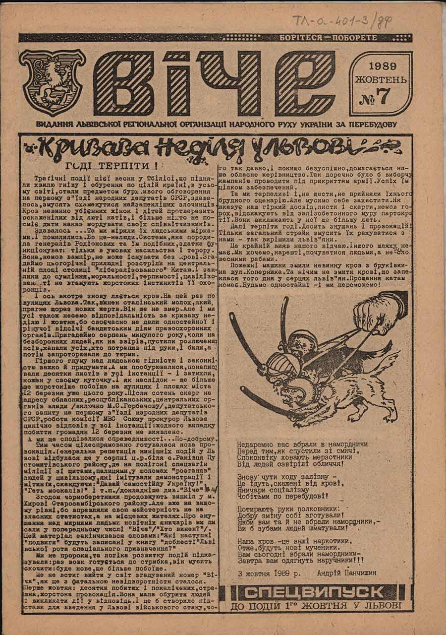 Перші протистояння проти силових структур у Львові відбулися 12 березня 1989 р. під час проведення санкціонованого передвиборчого мітингу-зустрічі на площі коло Успенської церкви (вул. Підвальна). Проти мітингувальників вивели 6-ту роту міліції та спецзагін, які застосовували тактику «витіснення» учасників зібрання. Тоді було затримано 108 осіб, 36 з яких притягнуто до адмінвідповідальності.