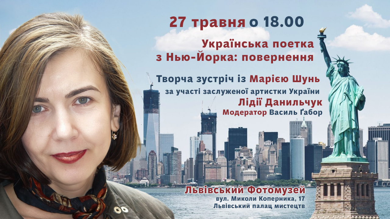 Львів готується до унікальної події: після тридцяти років життя у Нью-Йорку до рідного міста повертається поетка Марія Шунь. 27 травня 2025 року, у вівторок, о 18:00 у Львівському Фотомузеї (Львівський палац мистецтв, вул. Коперника, 17) відбудеться творча зустріч з мисткинею під назвою “Українська поетка з Нью-Йорка: повернення”. Вхід на захід безкоштовний.