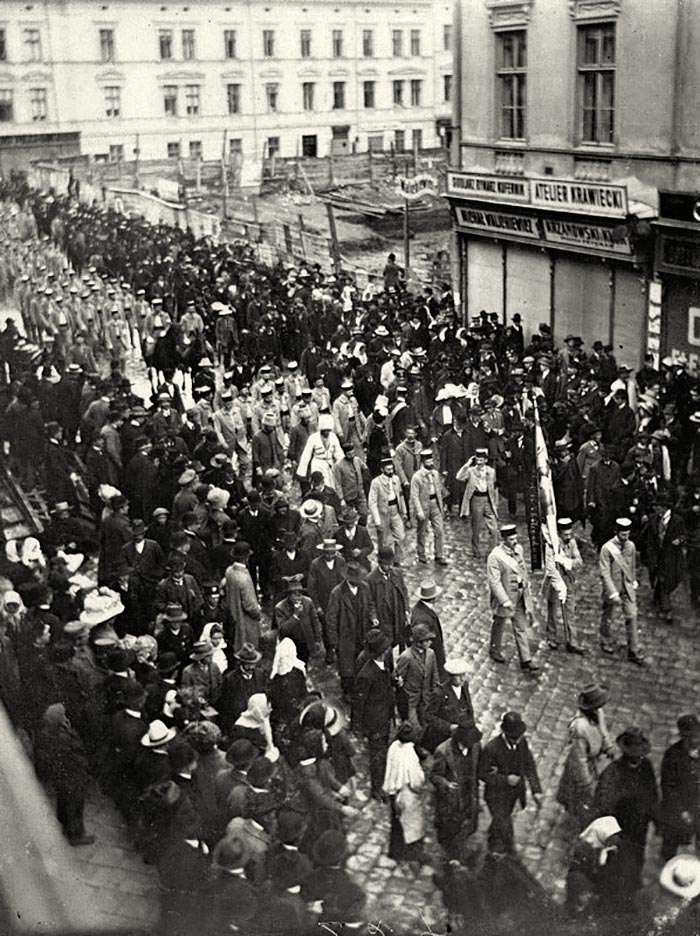 До посвячення прапора і святкового походу вулицями Львова залучилися представники інших товариств Львова та Галичини, які несли близько 70 організаційних прапорів. Учасники заходу організованою колоною вирушили з площі «Сокола-Батька» о 11 год 30 хв. Колону очолили 17 соколів на конях під проводом Йосифа Доманика. За ними йшли пожежники з села Вигнанки (тепер село Городоцького р-ну Хмельницької обл.); оркестр залізничників; хорунжий Іван Кревецький з прапором «Сокола-Батька», перший заступник хорунжого Броніслав Бурбела, другий заступник хорунжого Володимир Гузар; президія «Сокола-Батька» на чолі з Іваном Боберським, Льонгином Цегельським і Михайлом Волошином; представники чеських соколів – заступник голови Франц Машек, голова технічної секції Богумил Гавель; українців з Бразилії, товариства «Січ», віденської і грацької «Січей», голови окружних осередків. Іван Дигдалевич з Тернополя на коні «провадив цїлу армію». Усіх соколів в одностроях було 586, сокілок – 282 (з Бережан – 20 осіб, Бібрки – 24, Жидачева – 24, Станиславова – 48, Коломиї – 36, Львова – 120, Микулинців – 32, Перемишля – 24, Рогатина – 48, Самбора – 32, Стрия – 64, Теребовлі – 36, Тернополя – 50, Ходорова – 36, Чорткова – 32, з інших населених пунктів Галичини – 242). У поході взяли також участь учні українських гімназій. Усього людей у поході налічувалося 7896 (також 8 оркестрів). Учасники походу пройшли такими вулицями: Кадетська (тепер вул. Героїв Майдану), Коперника, Трибунальська (тепер вул. Шевська), площа Ринок, повз будинок товариства «Просвіти», Галицька, Академічна (тепер проспект Т. Шевченка), св. Миколая (тепер вул. М. Грушевського). Зиблікевича (тепер вул. І. Франка). Багато будинків упродовж маршруту були прикрашені килимами і синьо-жовтими прапорами.