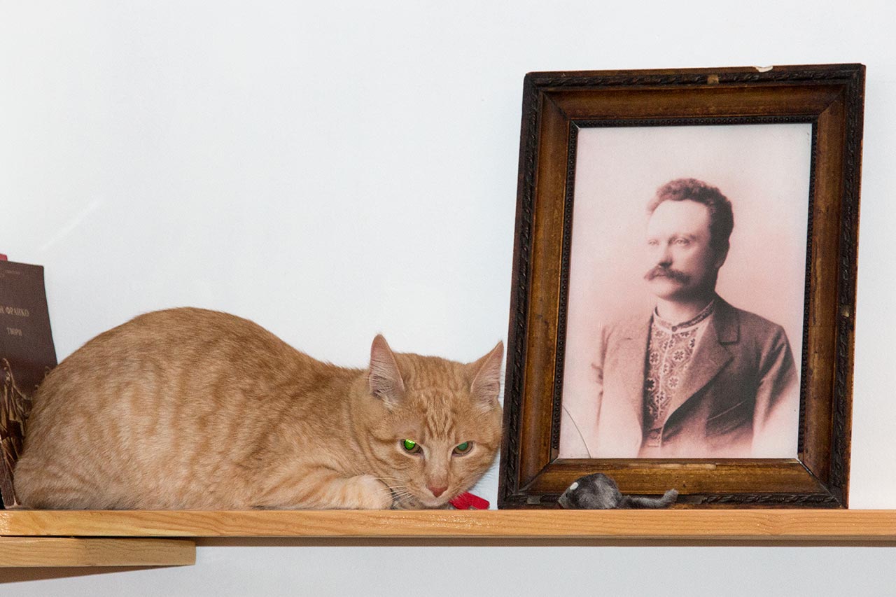 Після переїзду Мурлика одразу зрозумів своє завдання та місце в будинку і примостився на поличці поряд з фотографією господаря дому – Івана Франка.