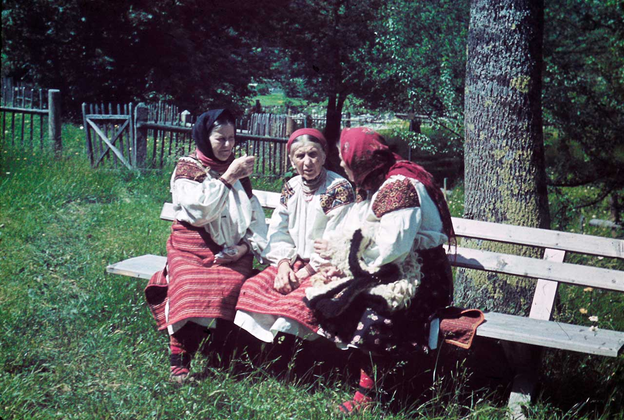 Хочу тут згадати, що більшість етнографічних світлин, поміщених в цьому альбомі, була в оригіналі кольоровими прозірками. Тільки після приїзду до США батько переробив їх на чорно-білі світлини. На жаль, ціла серія прозірок з Космача і з Шешорів не є вдала в кольорі. Фотографовані літом 1939 р. (батько вживав німецькі фільми “Аґфа”) а проявлені два роки пізніше (перешкодила війна) втратили оригінальний колір. Очевидно тепер є можливість виправити ці кольори – але це вже інша тема.