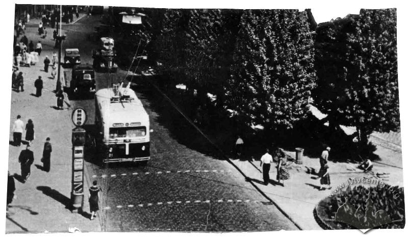 У 1958-1960 роках тут відкривають тролейбусне кільце і частина тролейбусних маршрутів переходить сюди з пл. Міцкевича. Від будинку профспілок курсують маршрути на вул. Стрийську і в р-н Новий Львів.