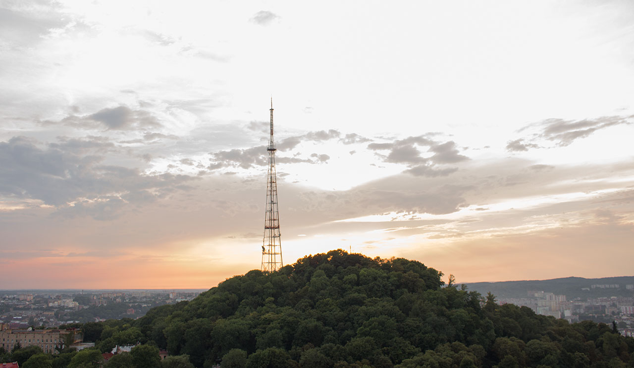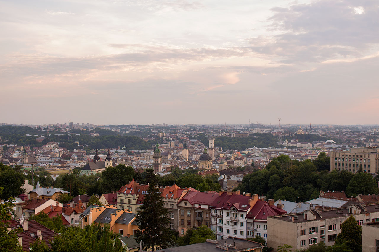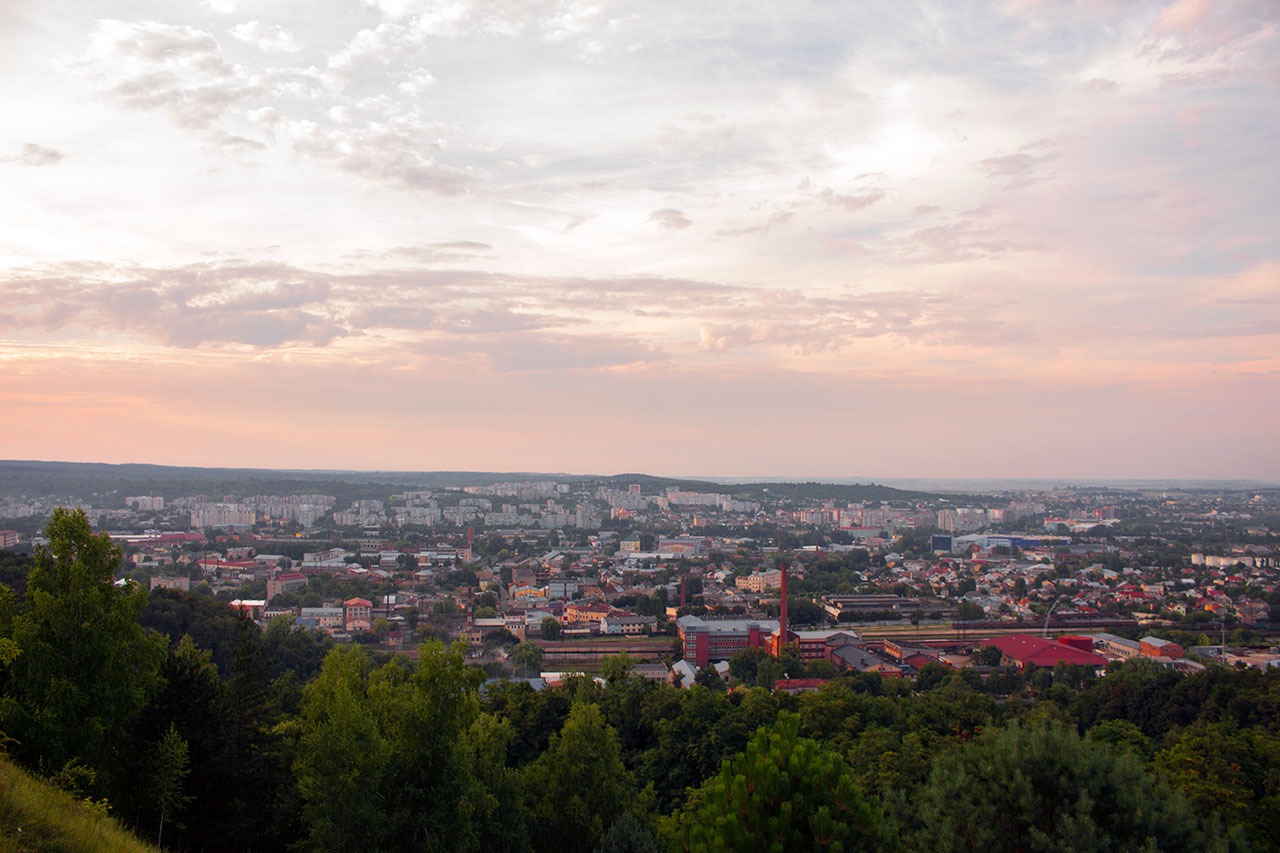 А ще Львів, у червоних променях сонця звідси виглядає нереально красиво. До речі, спостерігати можна як центральну частину міста, так і майже все Підзамче.