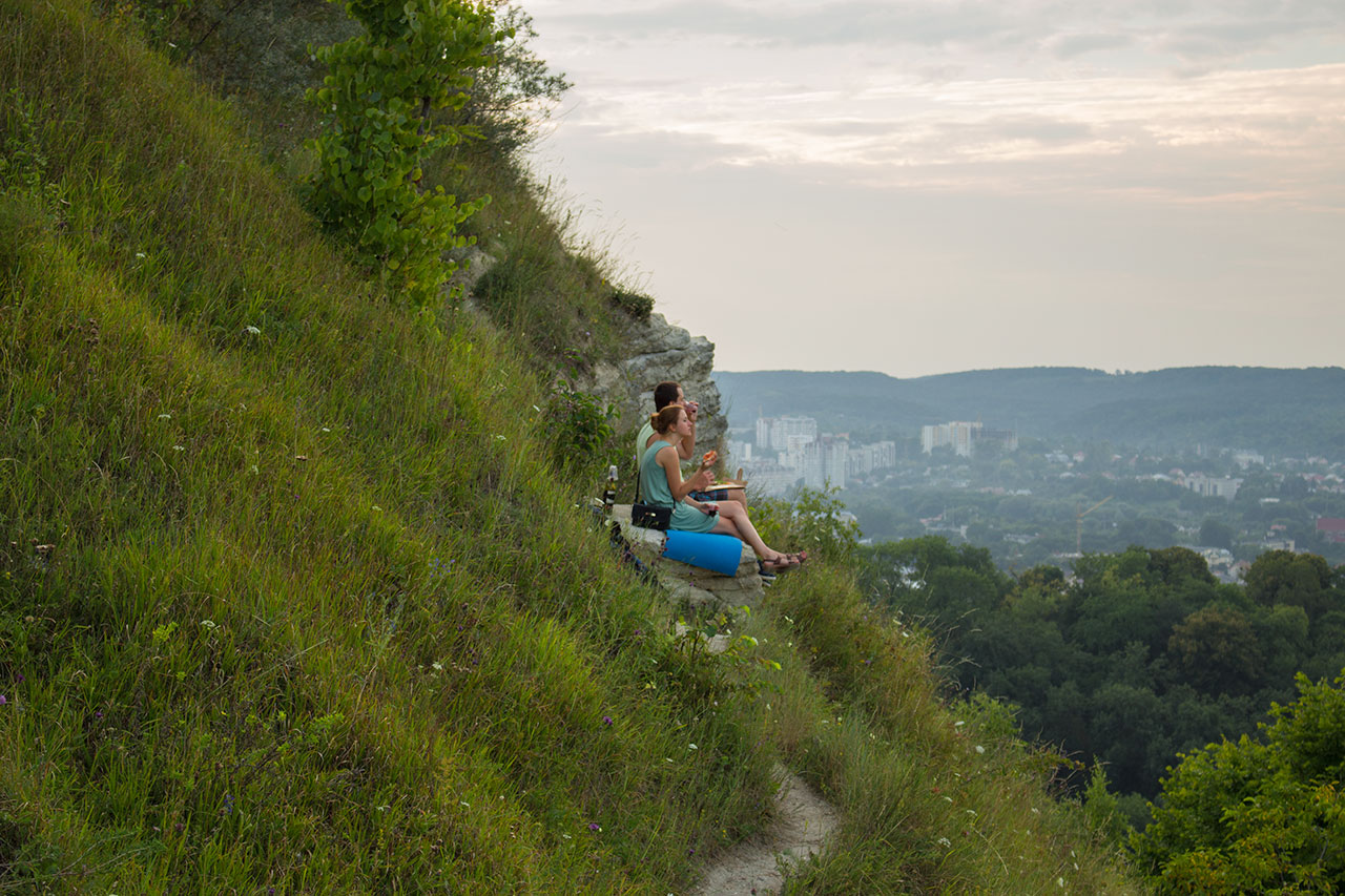 Вечірній час спекотного літнього дня приємно провести в тіні столітніх дерев, де пісковик під ногами забирає спеку та втому, в товаристві близької людини, помилуватися краєвидами…. можна навіть без слів…