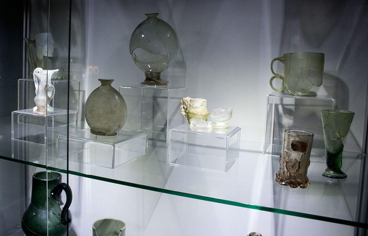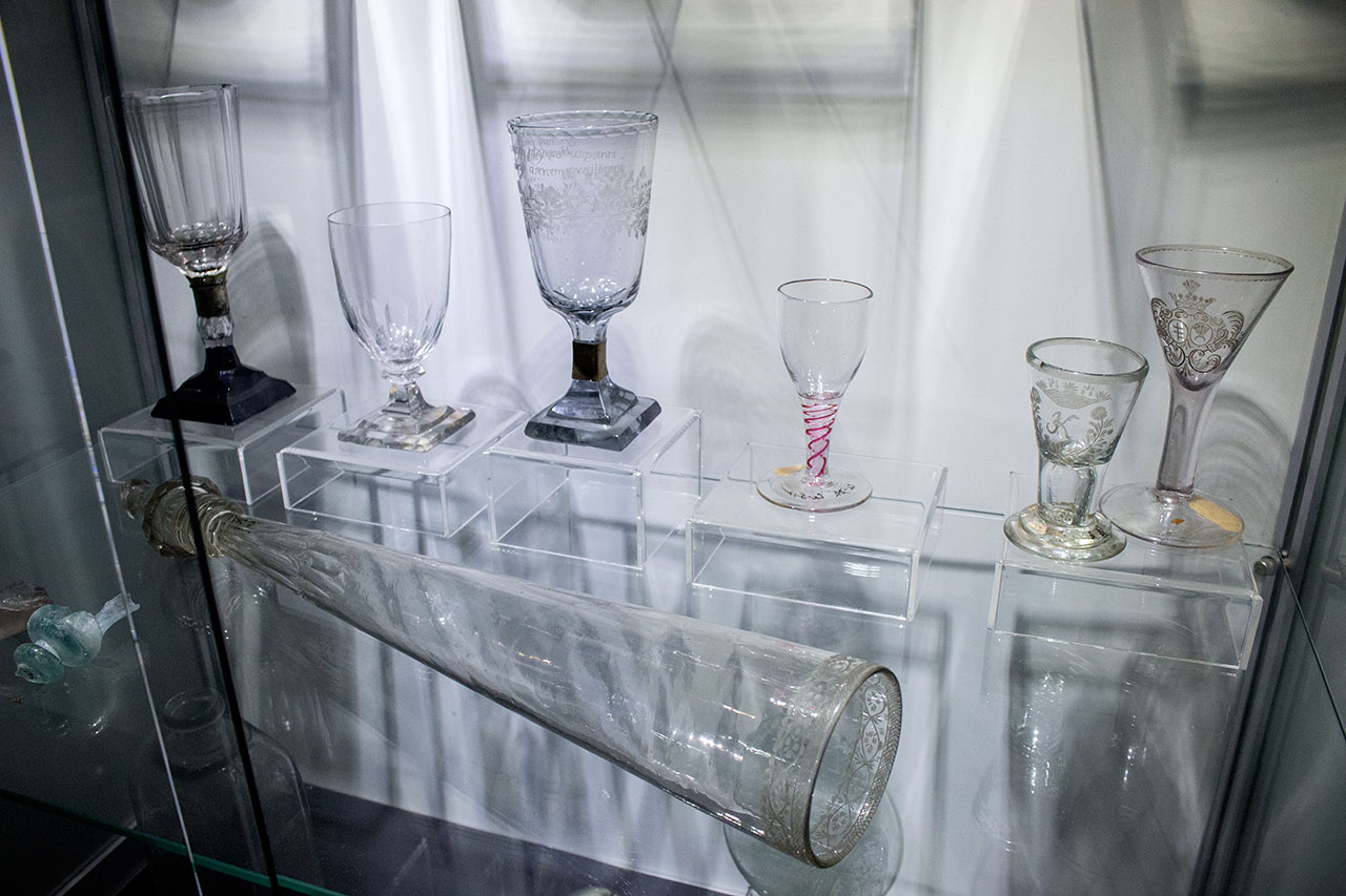 Перший зал музею створений з метою наблизити відвідувачам історію виготовлення виробів зі скла на теренах України. Тут представлені унікальні експонати з І-ІІ ст. н. е., скло періоду Київської Русі та продукція гут Галичини з XVI-XX ст.