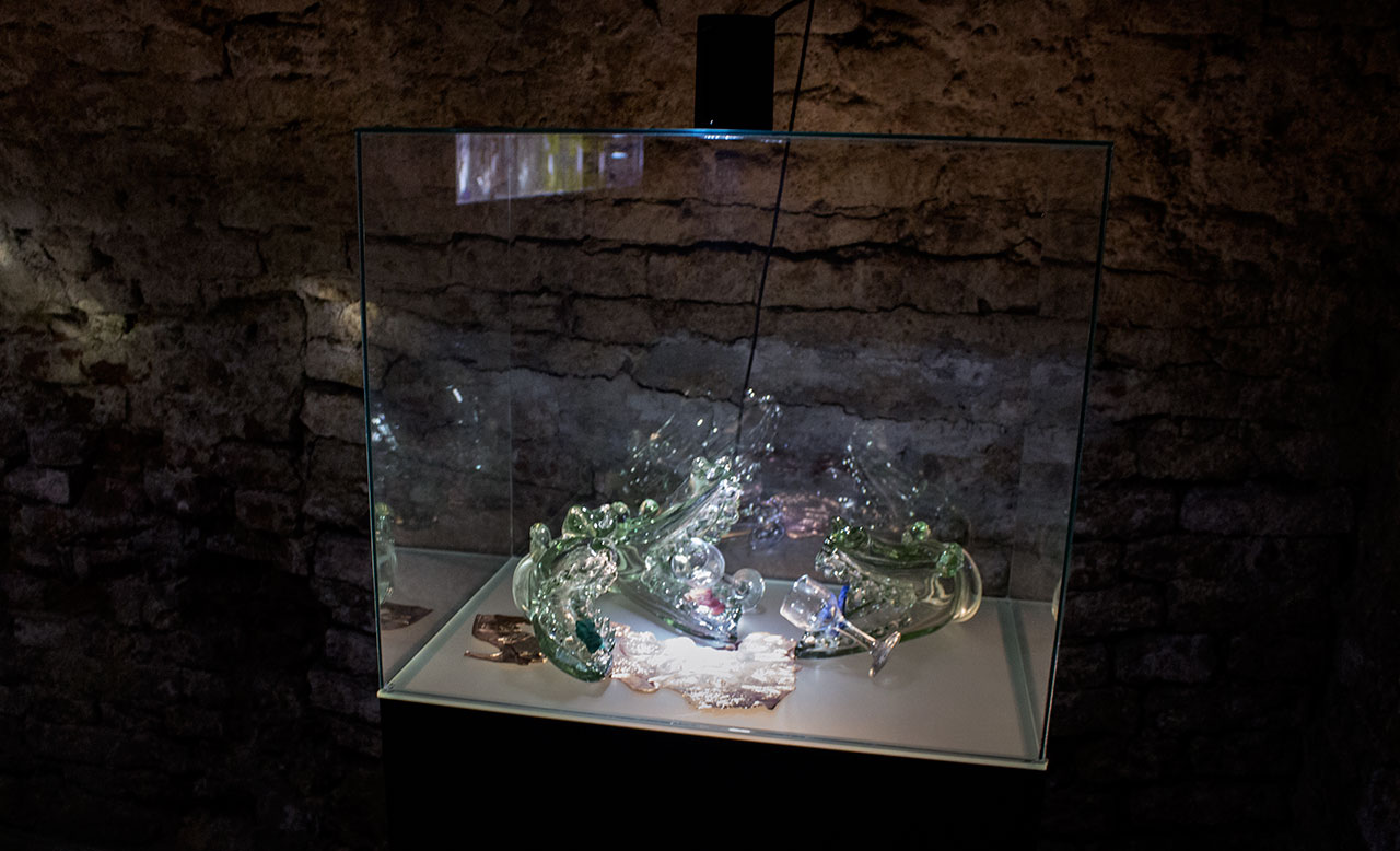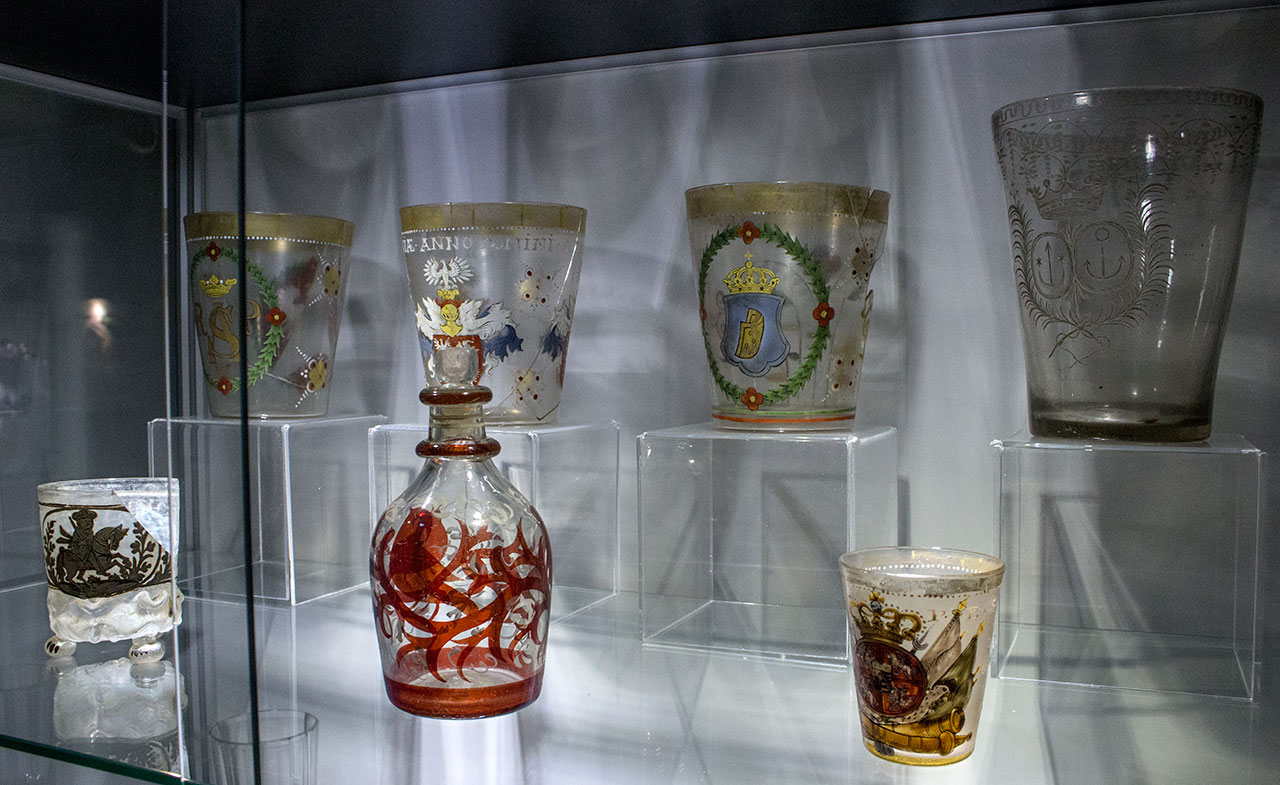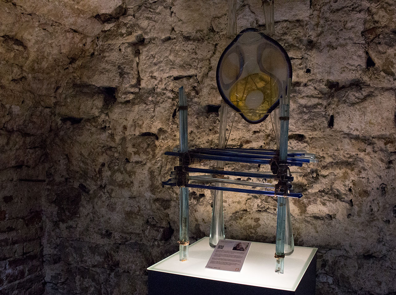 Наступний зал розповідає як робиться скло, знайомить з матеріалами та процесом варки, інструментами та методами обробки і декорування поруч з імпровізованим місцем роботи склодува.