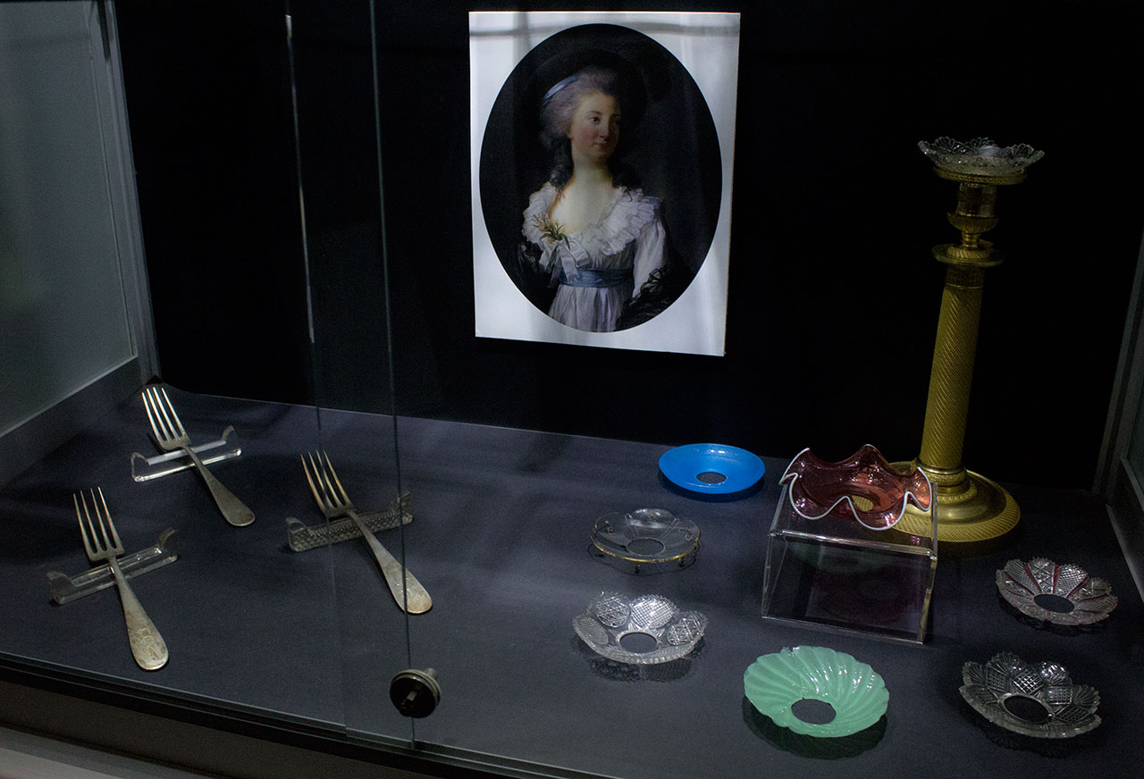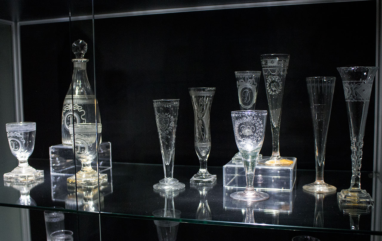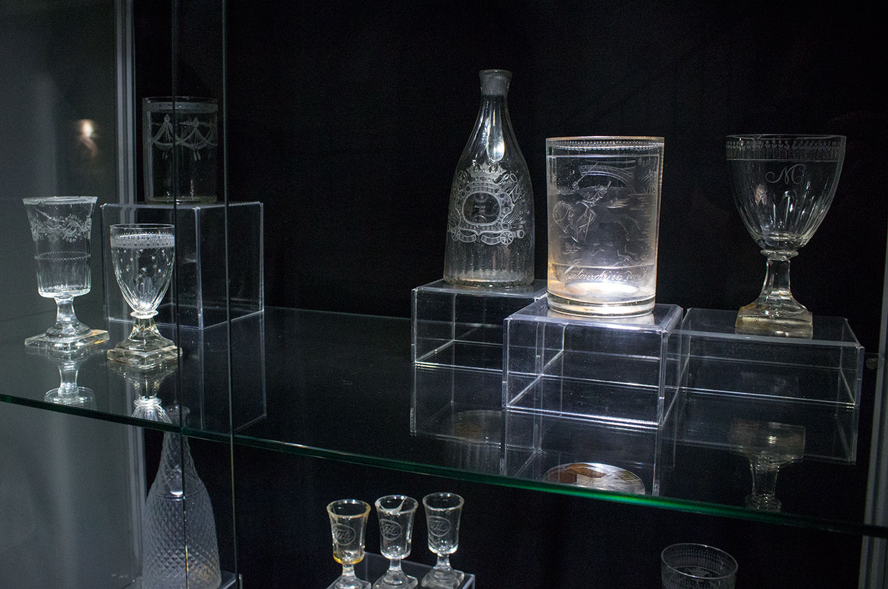 Наступний зал розповідає як робиться скло, знайомить з матеріалами та процесом варки, інструментами та методами обробки і декорування поруч з імпровізованим місцем роботи склодува.