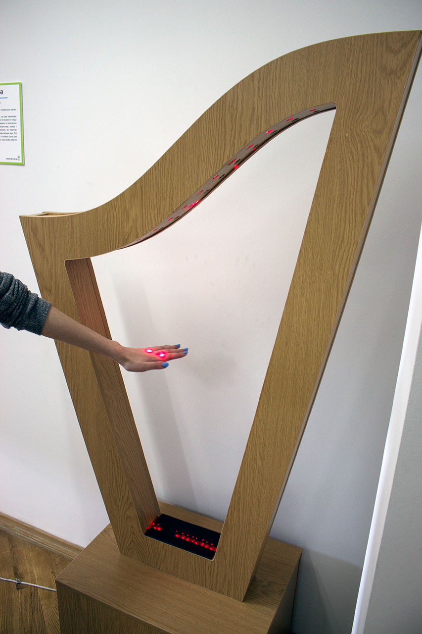 Наприклад, на виставці можна зіграти на арфі без струн, легко підняти 30-кілограмову гирю, виміряти децибели сили свого голосу.