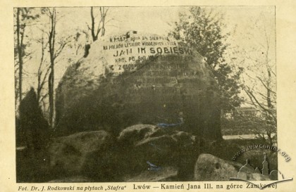 Давнішим за пам’ятник Кілінського та обеліск Віснєвського, та й загалом найдавнішим уцілілим до сьогодні пам’ятником Львова є занедбаний монумент на Високому Замку, який хоч і позбавлений людських скульптур, однак теж відноситься до пам’яток монументального мистецтва. Цей камінь на пам’ять про перемогу війська під проводом Яна III Собєського над татарською армією 1675 року було встановлено на нижній терасі гори зі сторони Папарівки у 1883 році. Зараз цей монумент є занедбаним та поруйнованим. Хоча досі можна помітити фрагменти польських написів, повний текст яких був таким: «Р. Б. 1675, дня 24 серпня на Лисиницьких полях, які видно з цього узгір’я, Ян III Собєський, король польський, великий князь литовський та ін. на чолі 6000 польських лицарів розгромив 40000 татарську орду, що наступала на Львів. Вшановуючи пам’ять героїчного захисника, Рада м. Львова в 200-ту річницю визволення Відня, 12 вересня 1883 р., поклала цей камінь».