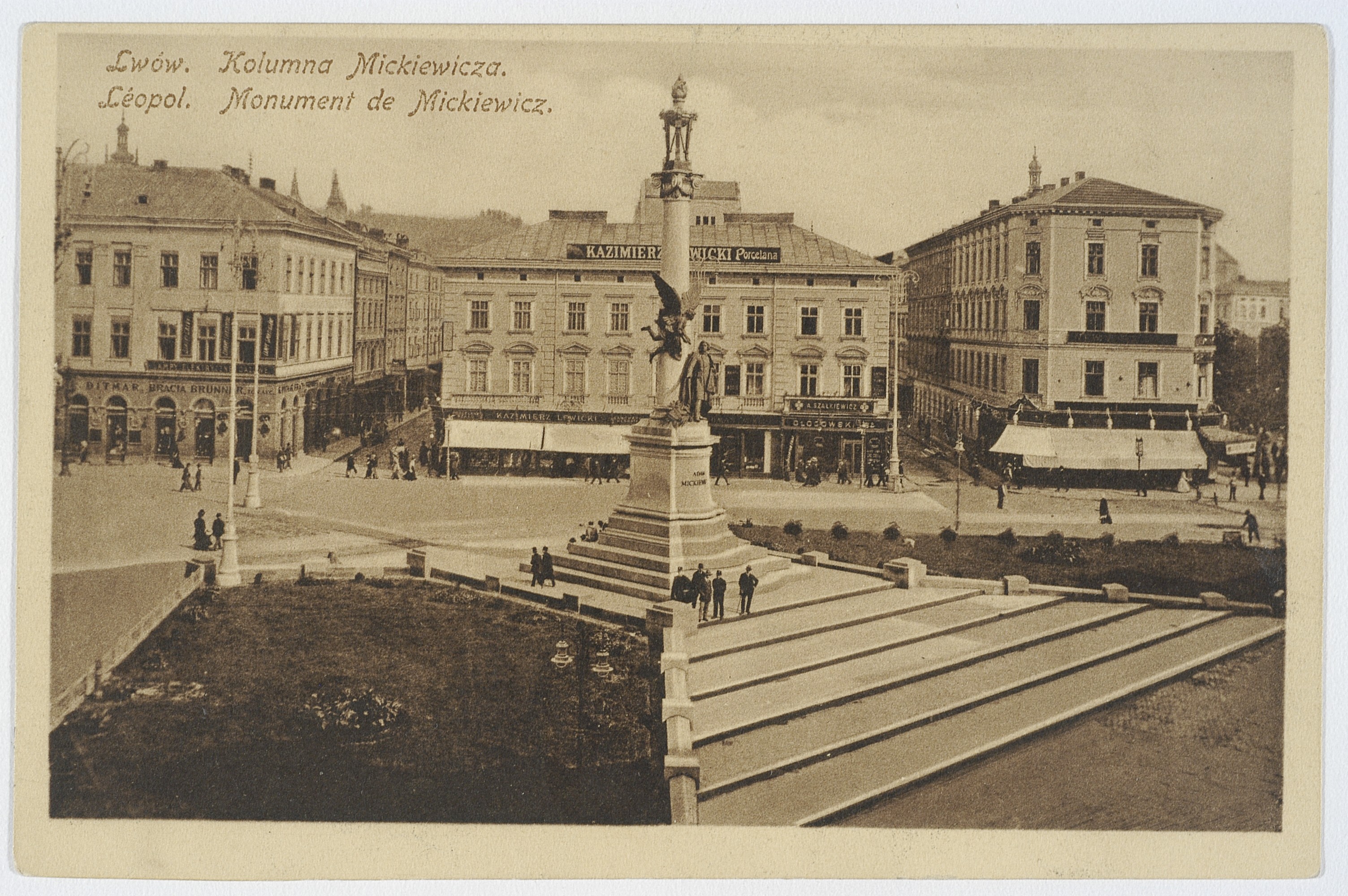 А от пам’ятник Адаму Міцкевичу на одноіменній площі, який старший від попереднього пам’ятника всього лиш на 2 роки, можна назвати «найнаглішим» пам’ятником Львова. Це ж скільки треба мати хамства, щоб потіснити скульптуру Матері Божої. Не дарма ж колись у нашому місті жартували «Посунься Маріє, бо Міцкевич іде». А якщо серйозно, то пам’ятник польському поетові, котрий, як і Гловацький, у Львові ніколи не бував, був чи не найдорожчим монументом того часу. Кошти на нього збирали так довго, що від часу коли обрали проект пам’ятника (1898 рік) та до відкриття (1904 рік) пройшло аж 6 років. І кращого місця для Міцкевича не знайшли як площу, де до того уже пів століття стояла скульптура Богоматері, котру довелося перемістити на початок проспекту, там вона стоїть і по сьогодні. Чому радянська влада вирішила залишити цей монумент у Львові, а не передати полякам, як вчинила з тим же Фредром, залишається тільки гадати. Можливо свою роль зіграло те, що Міцкевич довгий час жив і працював в самій Росії.