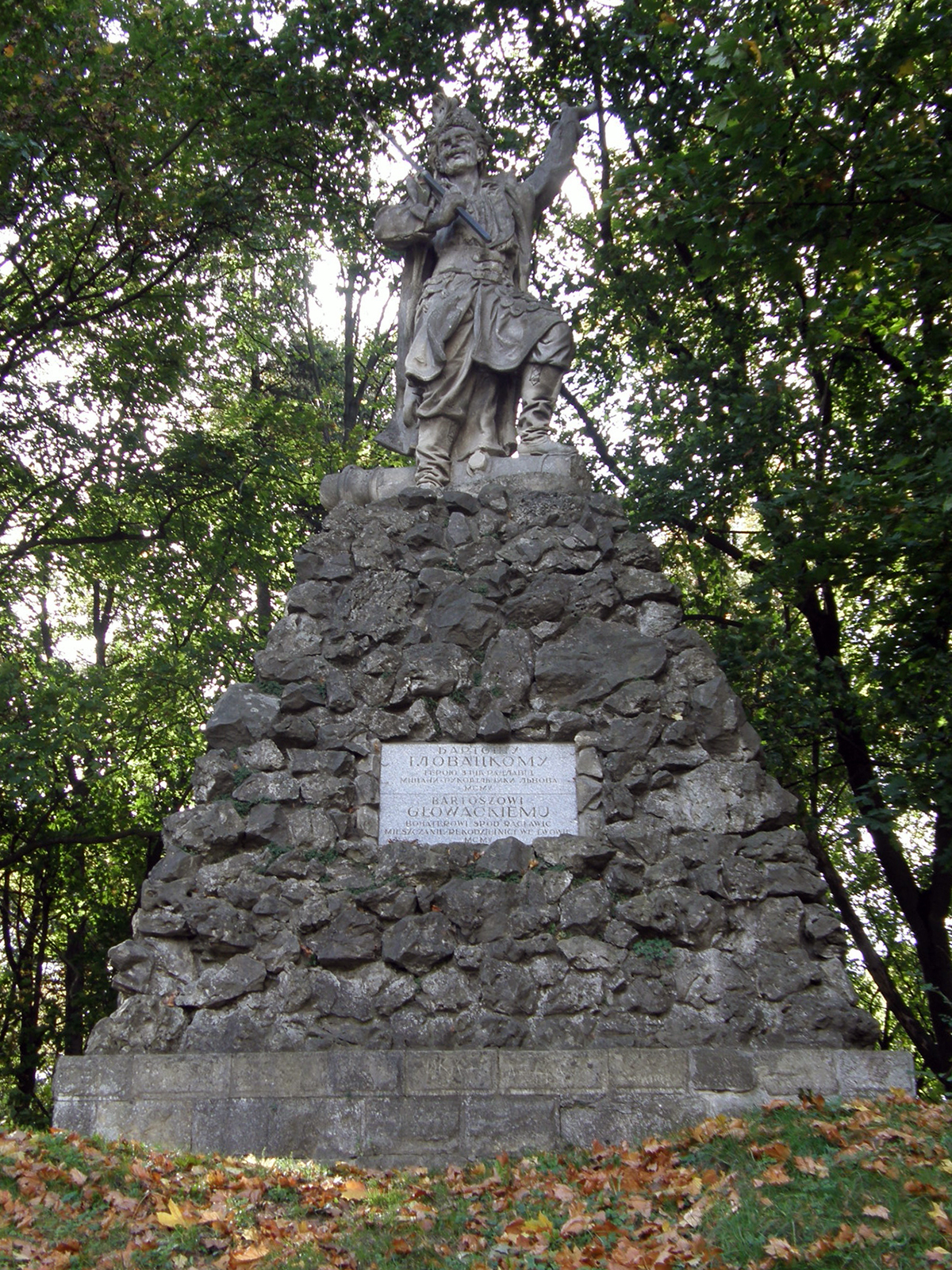 Якщо більшості львів’ян, пам’ятник, що знаходить в парку на вулиці Личаківській може і відомий, то постать Бартоша Гловацького навряд чи. І це не дивно, адже жодного стосунку цей чоловік до Львова ніколи не мав. А пам’ятник йому звели поляки як героєві повстання під проводом Тадеуша Костюшки, а конкретніше – героя Рацлавицької битви. Нагадаємо, що битва ця була проти російських військ, а тому дивно, що пам’ятник пережив радянську владу Львова. Однак його врятувало те, що сам Бартош був кріпаком за походженням, тож радянська пропаганда «трудящим» борцем за справедливість. Поставили цей монумент ще в 1906 році. З того часу він лиш оновив свою табличку, на котрій окрім польської тепер присутня й українська мова.