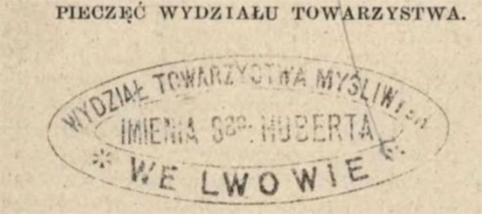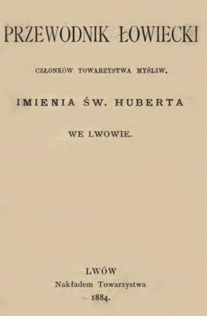 - Przewodnik łowiecki członków towarzystwa myśliw. imienia św. Huberta we Lwowie. – Lwów, 1884. – S. 55