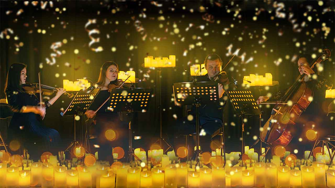 Під м’яким сяйвом сотень свічок прозвучать світові хіти ABBA (Dancing Queen, Mamma Mia), Celine Dion, Alicia Keys, Ed Sheeran, а також класичні різдвяні мелодії: Jingle Bell Rock, White Christmas, Let It Snow, Shake Up Christmas, It’s the Most Wonderful Time of the Year.