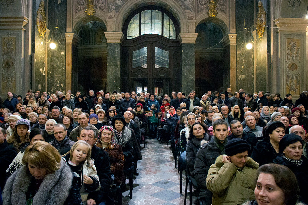 Для того, щоб потрапити на концерт потрібно було зробити добровільний внесок від двохсот гривень. Насамперед хочеться сказати, що храм у цей день був вщерть заповнений охочими долучитися до проекту допомоги бійцям в зоні АТО. Окрім сидячих місць (для тих, хто завчасно зробив пожертву і отримав запрошення), вся доступна для стояння площа була також заповнена людьми.