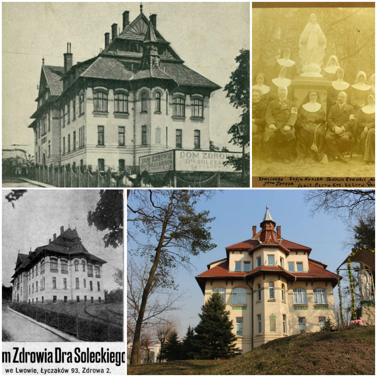 Неймовірну, казкову будівлю, де сецесійні мотиви змішались із популярним тоді закопанським стилем, споруджено у 1906-1908 рр. для санаторію “Дім здоров’я” лікаря Казимира Солецького за нин. адресою вул. Личаківська, 107. Проект розробив молодий, талановитий архітектор ( відповідний факультет Політехніки він закінчив у 1904 р. ) Олександр Лушпинський. Будівельні роботи виконувала відома фірма Івана Левинського.