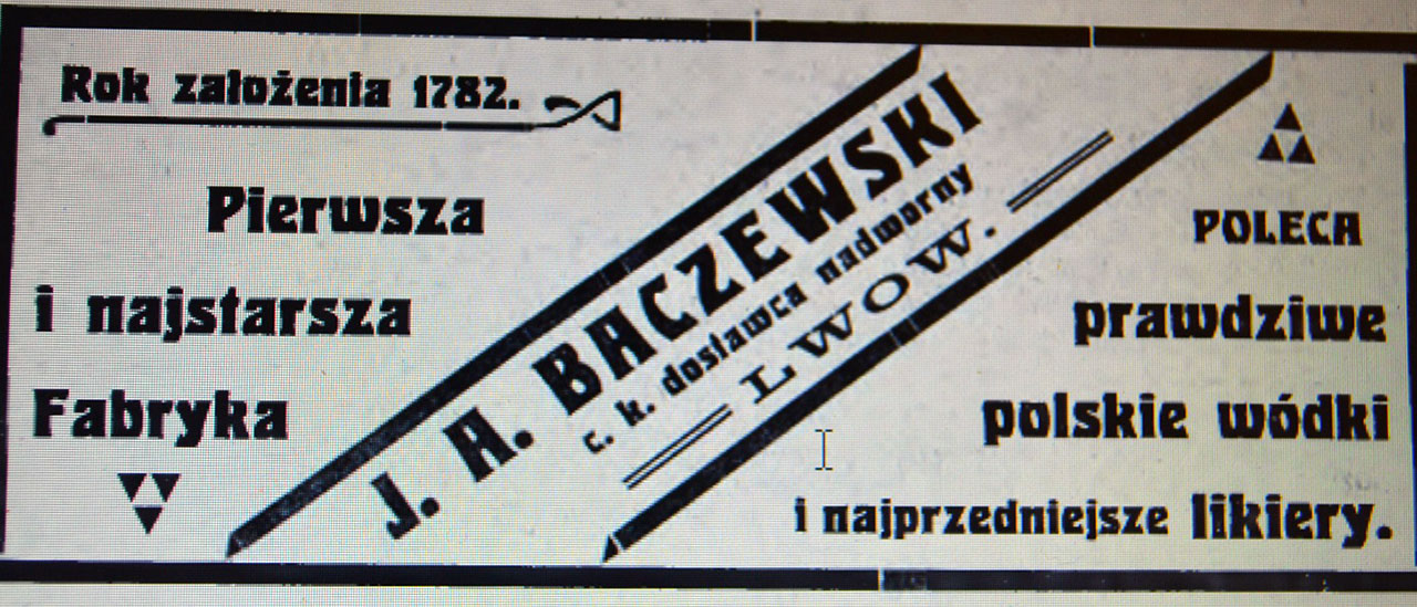 Алкогольні напої також з’являлися на сторінках львівської преси. Це і вина, і лікери і горілка. Відомою у своїй маркетинговій стратегії була родина Бачевських. Крім спирту та алкогольних напоїв, вони продавали оцет, парфуми, фармацевтичні препарати. Важко було знайти друковане видання, в якому б не було реклами продукції Бачевських.