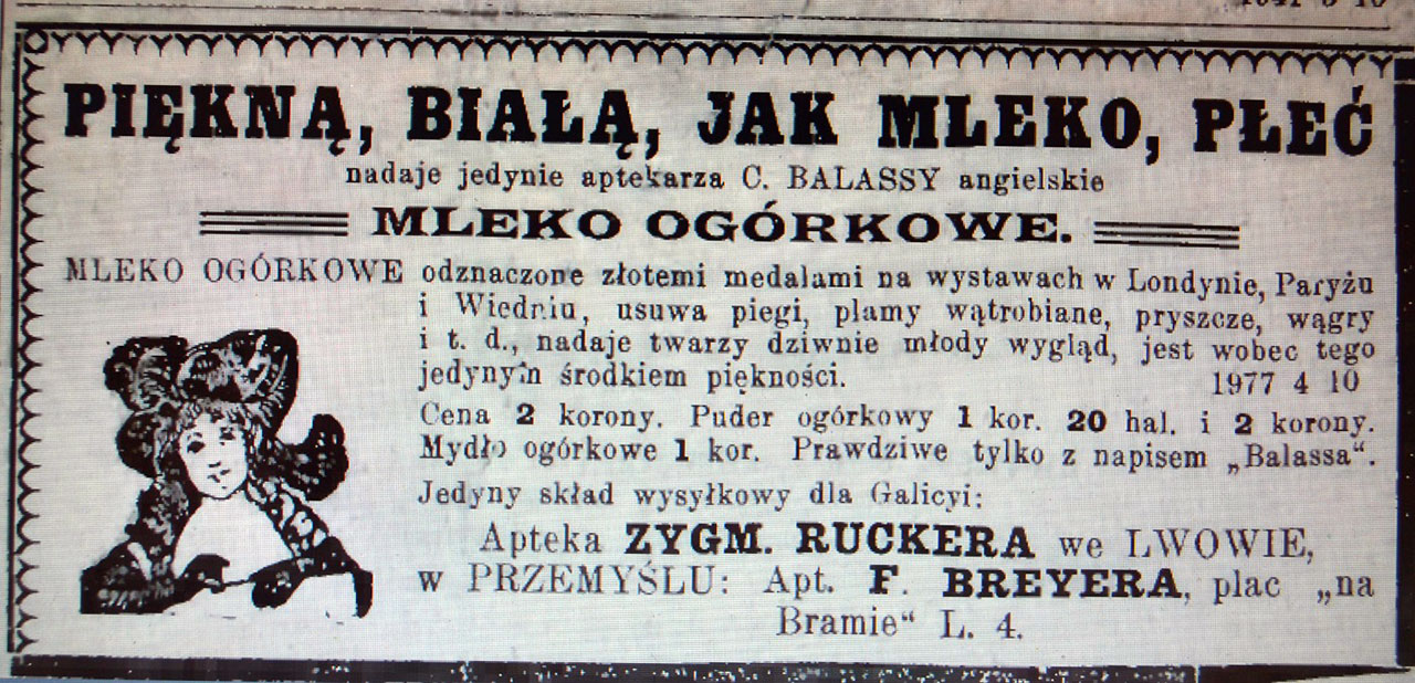 Жіноча краса актуальна у всі часи. Для представниць прекрасної статі рекомендували найрізноманітніші косметичні засоби як і львівські, так і такі, що можна було замовити закордоном.