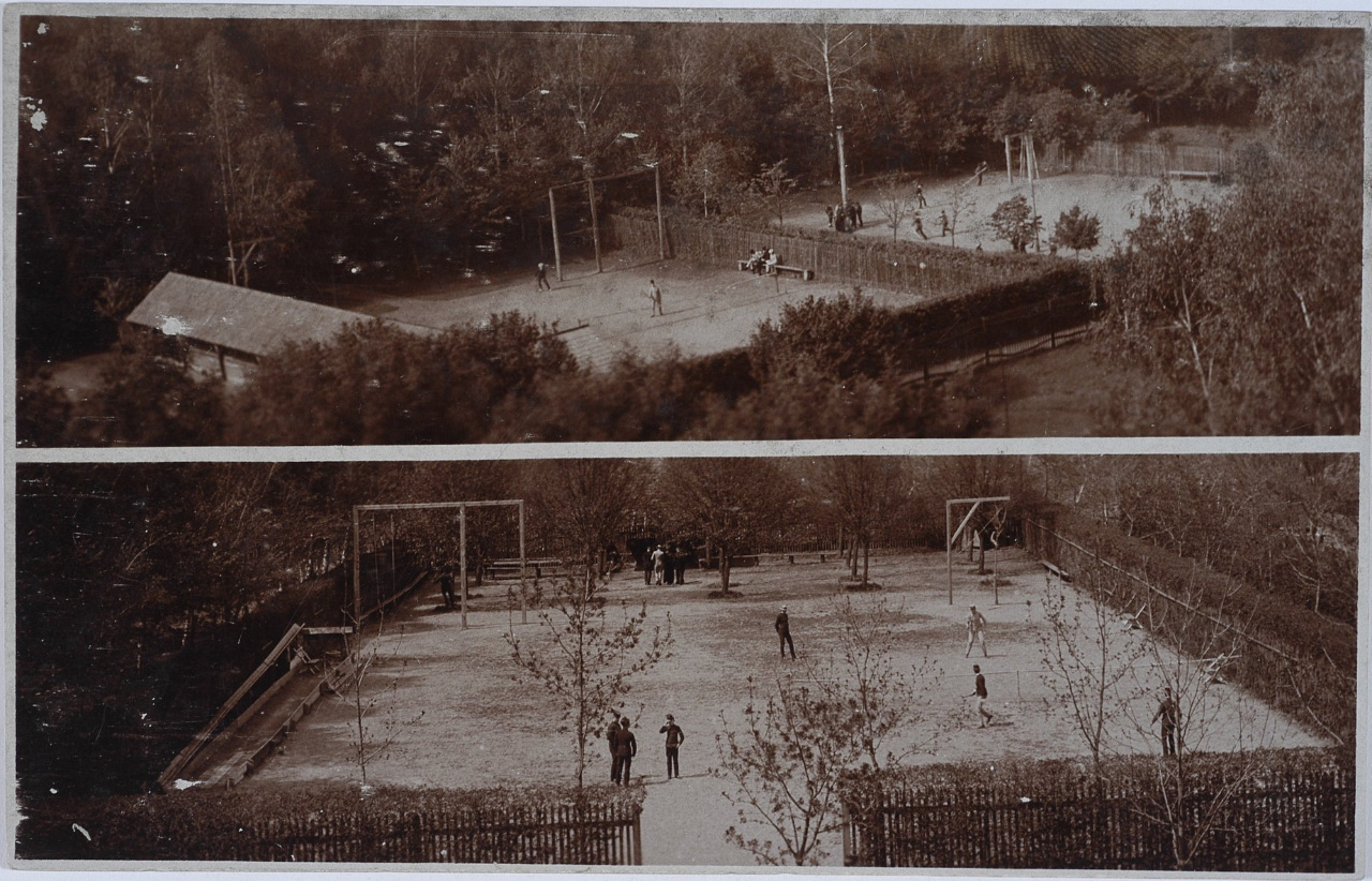 До конвікту належало 70 моргів парку і городу, 8 спортивних майданчиків розмірами від 1060 до 2070 кв. м, 4 тенісні корти, 5 ставів, 500 моргів поля і лісу. Перед головним будинком були розташовані клумби і травники. Широкі заїзди і рекреаційні стежки переплітали територію конвікту.