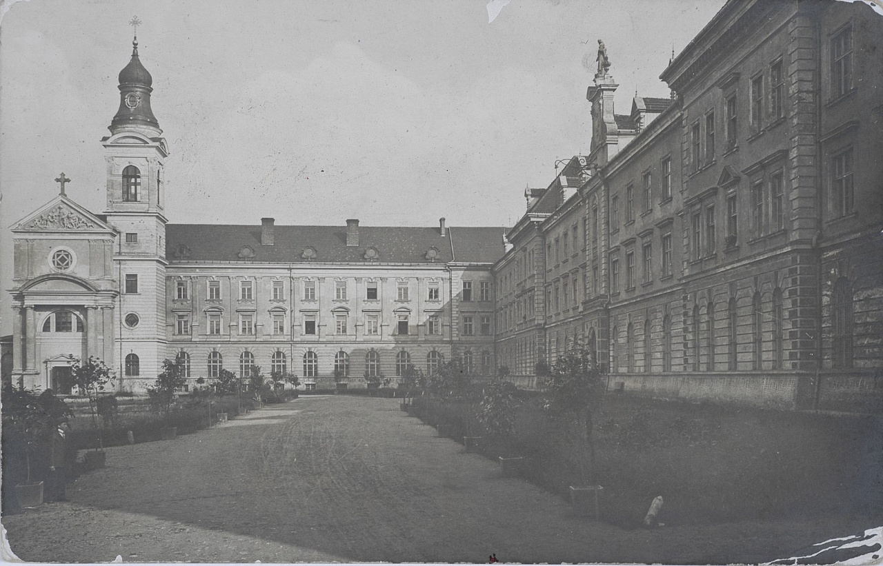 Справа в тому, що ще наприкінці 19-го – початку 20-го століття тут діяв відомий на всю Європу культурно-освітній заклад закритого типу для обдарованих дітей – єзуїтський конвікт (інтернат) більш ніж на 3 тисячі учнів. Масштаб будівлі вражає і досі. Сірі триповерхові корпуси, прикрашені ліпниною вікна з маскаронами та дорійськими напівколонами, кам’яний портик з синьо-жовтим гербом-тризубом – і вертикаль дзвіниці класицистичного величавого храму.