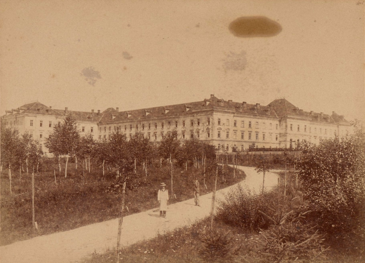 Великий парк і звіринець, засаджені рідкісними породами дерев, були вирубані. В роки німецької окупації тут знаходився спочатку від червня 1941 р. табір для військовополонених, а пізніше, від 1943 року – військовий шпиталь. Наприкінці 1943 року німці відновили діяльність закладу. Під час їх відступу в серпні 1944 року будівлі горіли. Тоді було знищене повністю південно-східне крило. Після повернення совєтів тут розмістилися військові; в наступні повоєнні роки в будівлях закладу розміщувалася одна з найпотужніжих в СРСР десантних бригад. На схід від комплексу було створено військове містечко. Каплицю використовували як їдальню.