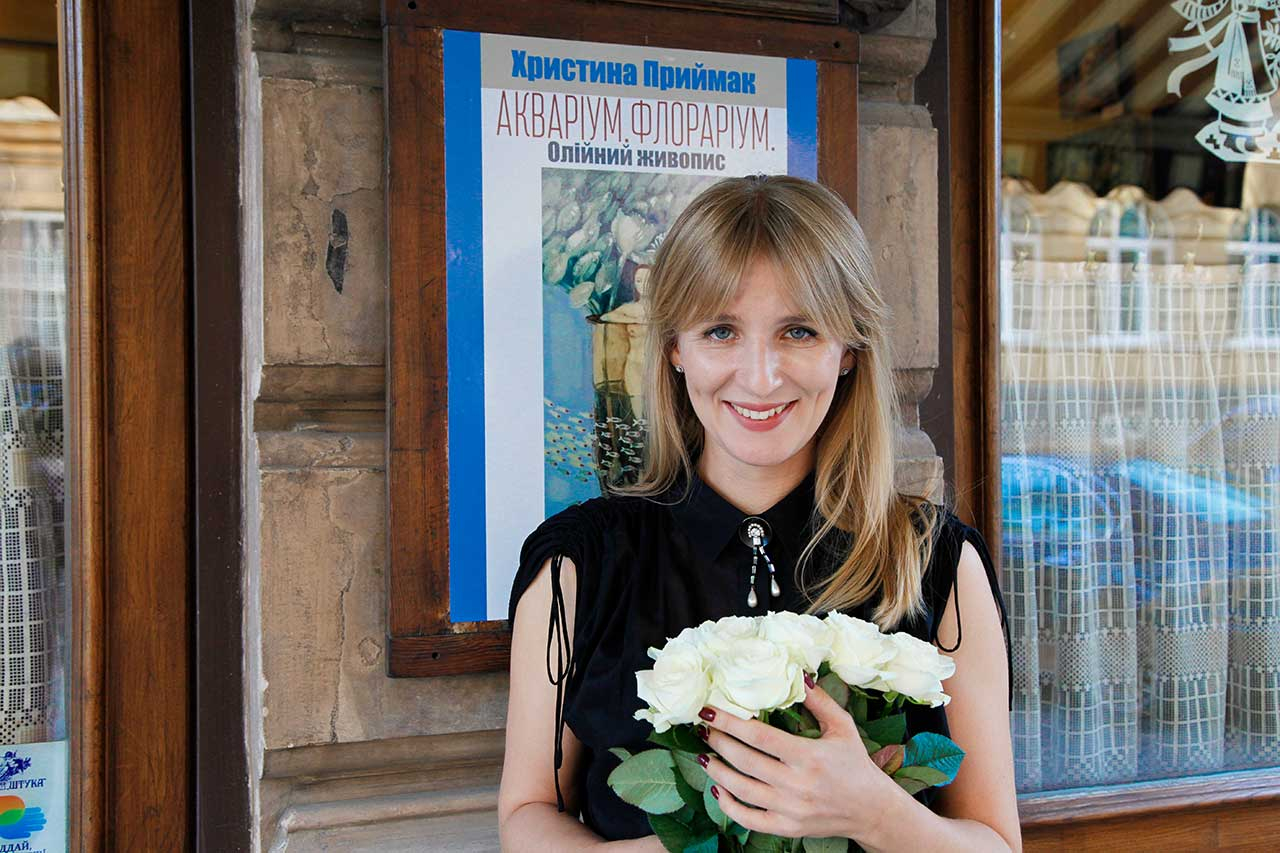 Довідково. Христина Приймак родом з міста Сокаль на Львівщині. Закінчила Львівську національну академію мистецтв за спеціальністю «художній текстиль». По завершенню аспірантури успішно захистила кандидатську дисертацію і здобула ступінь кандидата мистецтвознавства. Одночасно із науковою роботою займається малярством, експериментує з тематикою і технікою виконання. Сьогодні Христина Приймак – знана львівська художниця, учасниця низки пленерів, виставок і мистецьких проектів, серед яких «Сни перелітних», «Неспіймане», «Мистецький вікенд у Тартакові».